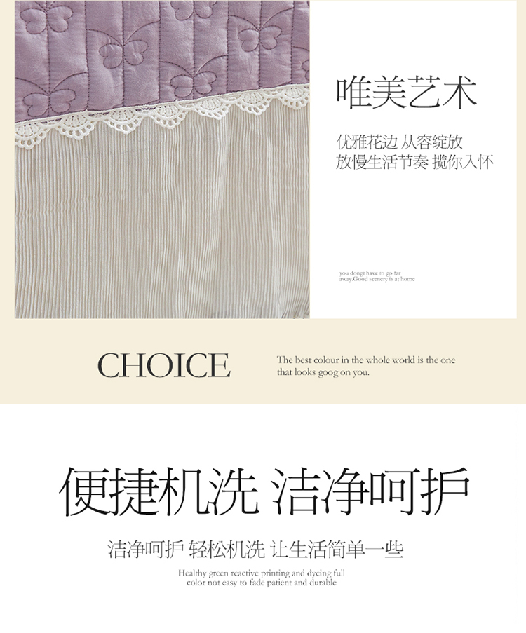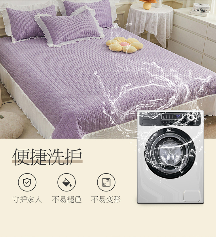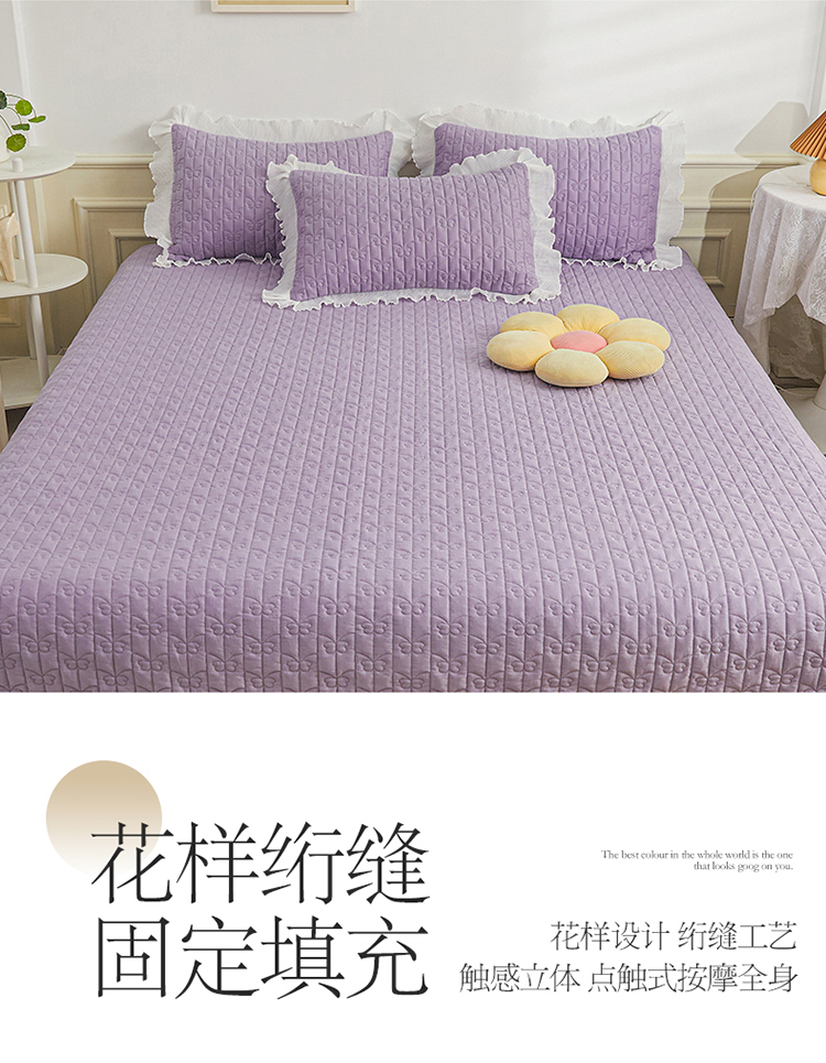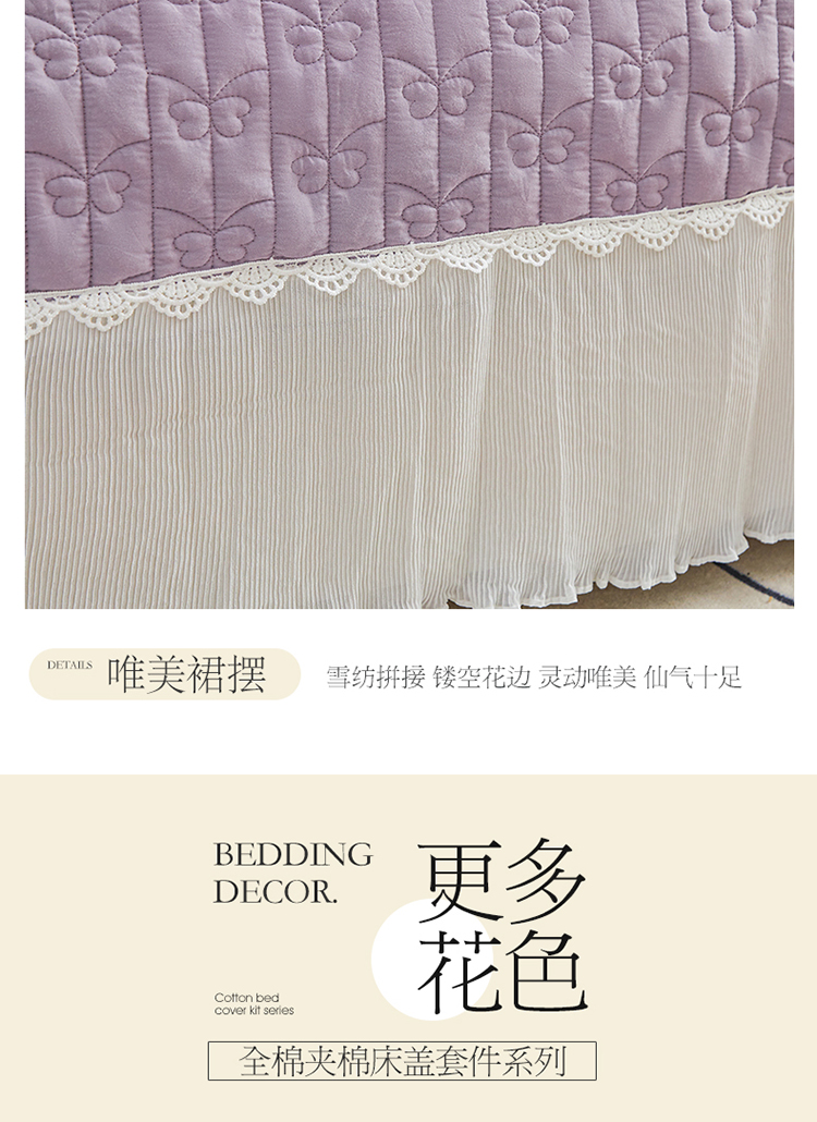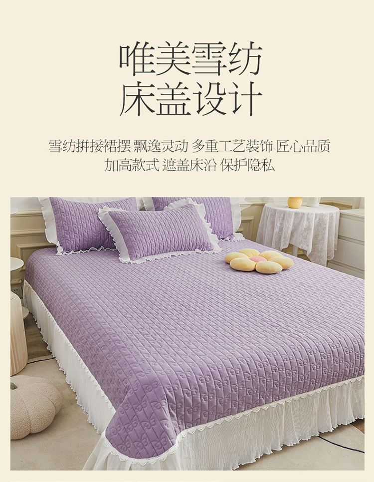 当前位置: 91家纺网 > 商品网购 > 床品套件 > 四件套 > 全棉普通四件套 > 宜凡家纺 2023新款全棉花边床盖三四件套 舒心紫