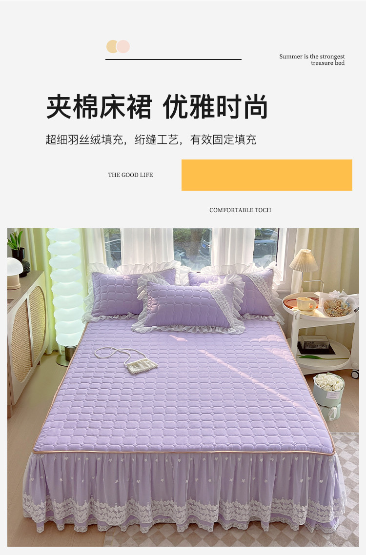 商品名称:罗艺轩 2024新款 泡泡纱夹棉床裙白雪公主系列 丁香紫