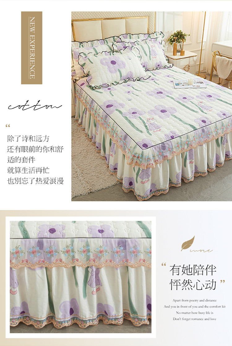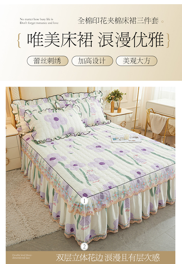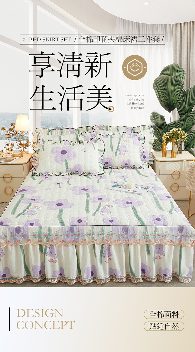 (总)宜凡家纺 2025新款全棉数码印花床裙三件套系列一,静若幽兰,浮云织梦,梦幻花园,陌上花开