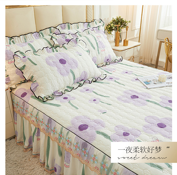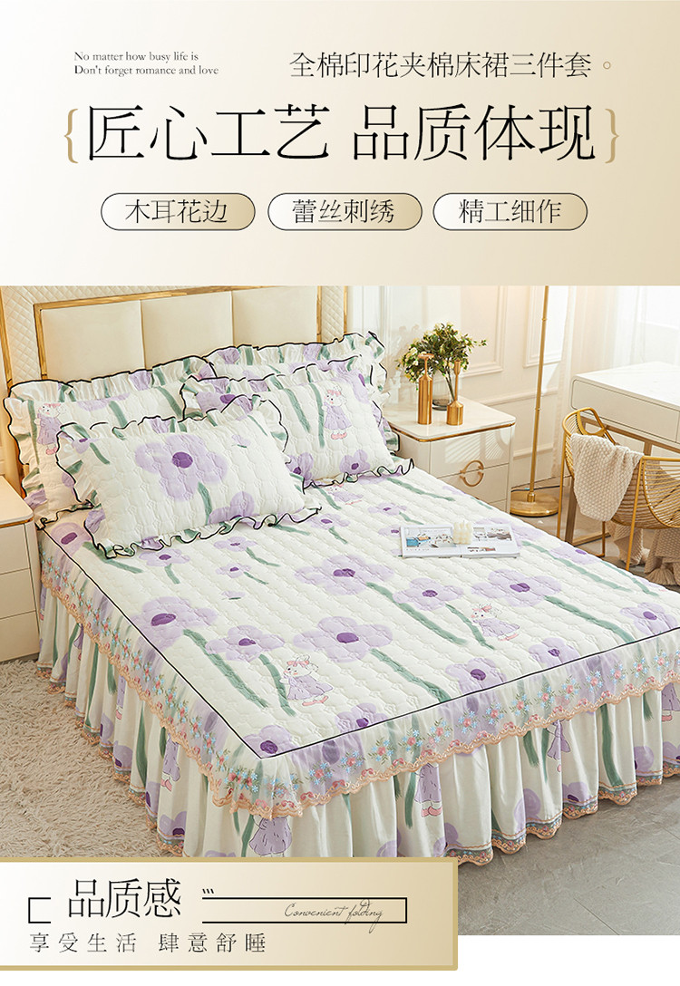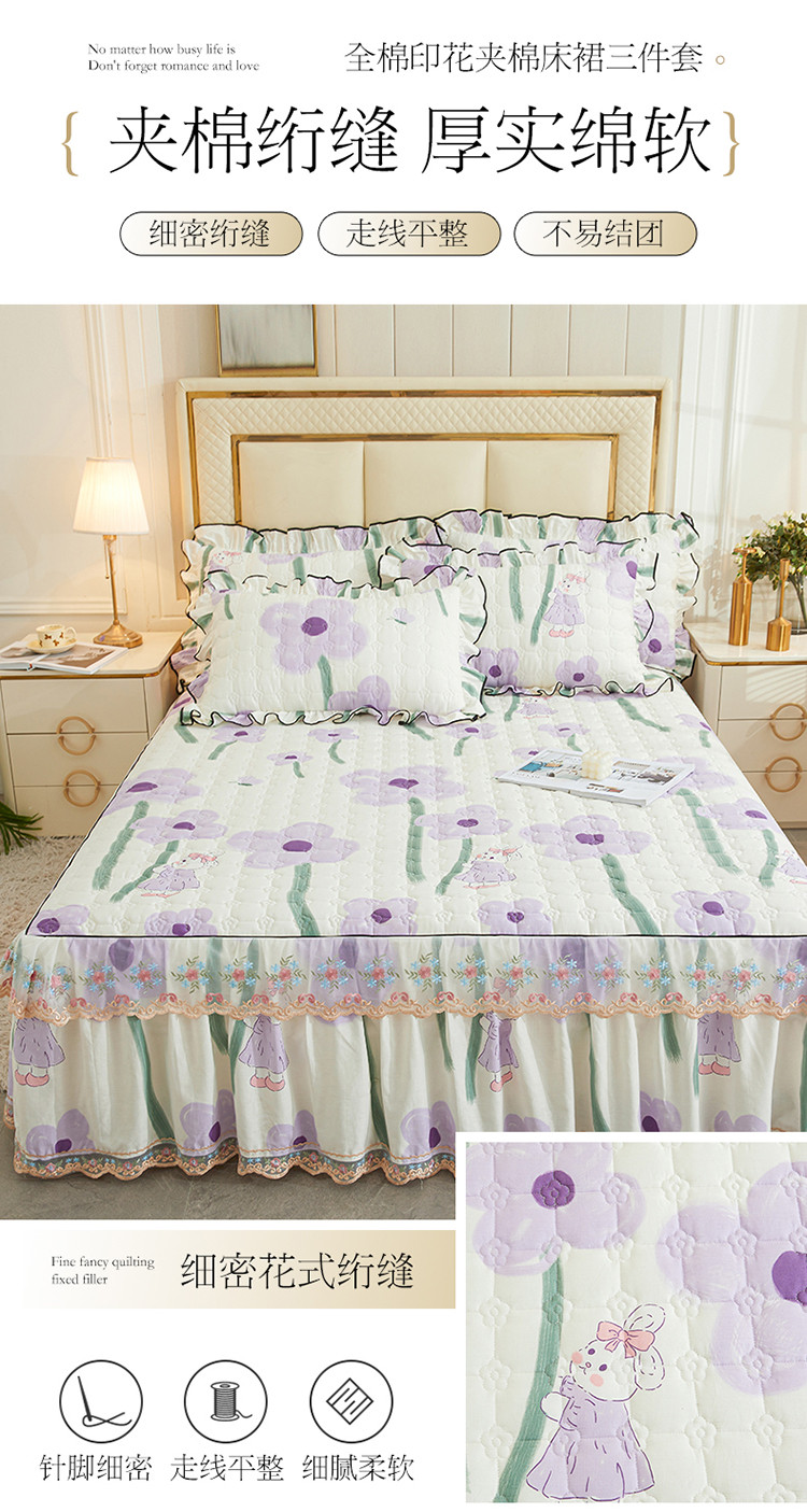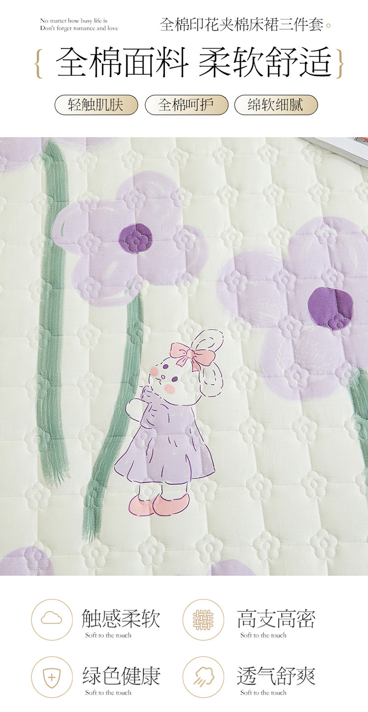 宜凡 2023新款四季款全棉夹棉床裙三件套 花丛小兔