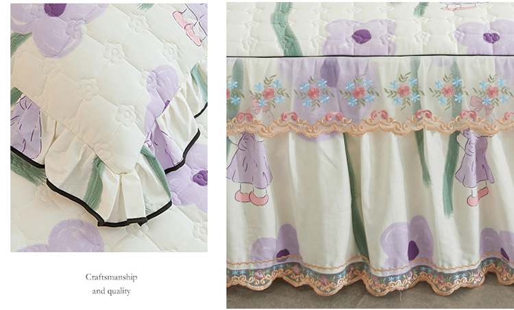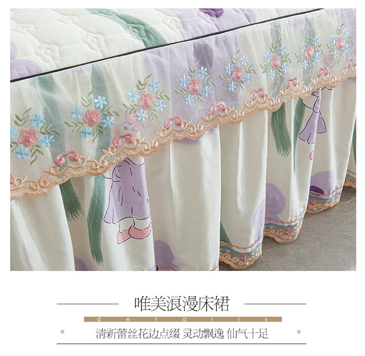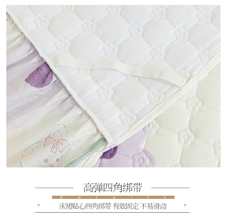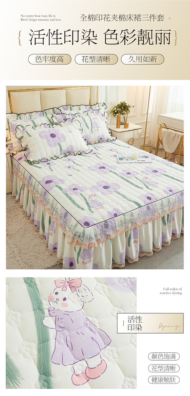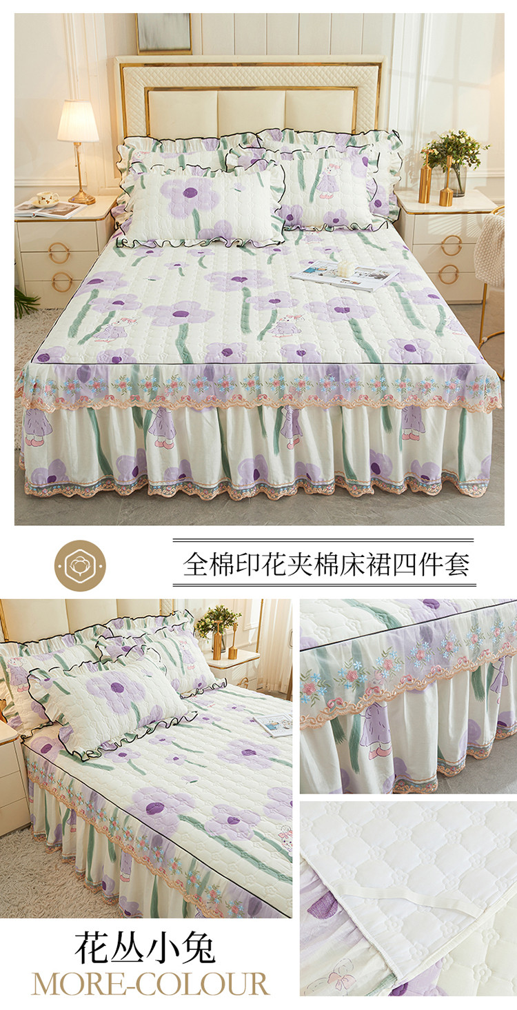 商品名称:宜凡 2023新款四季款全棉夹棉床裙三件套 花丛小兔