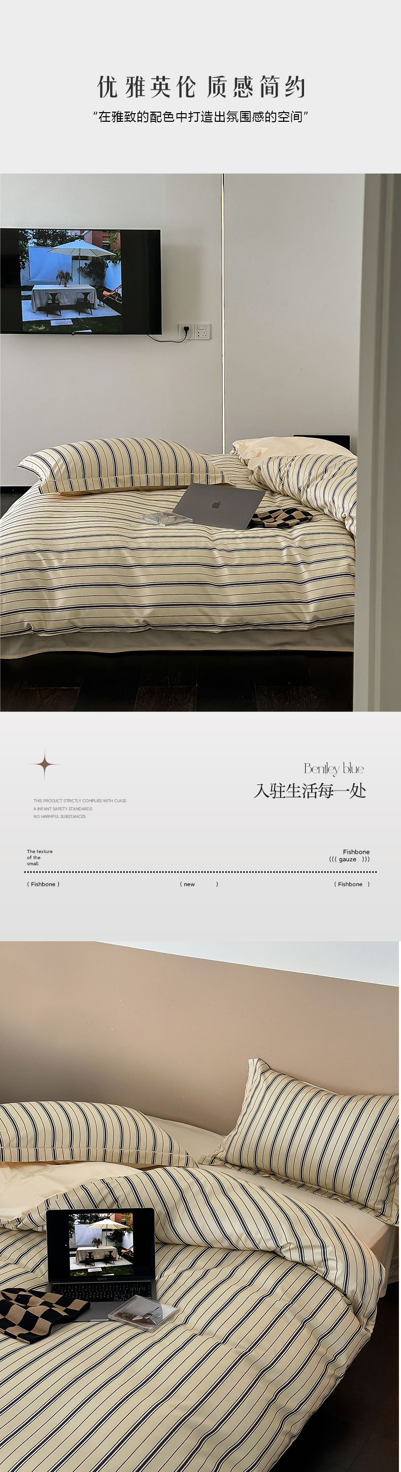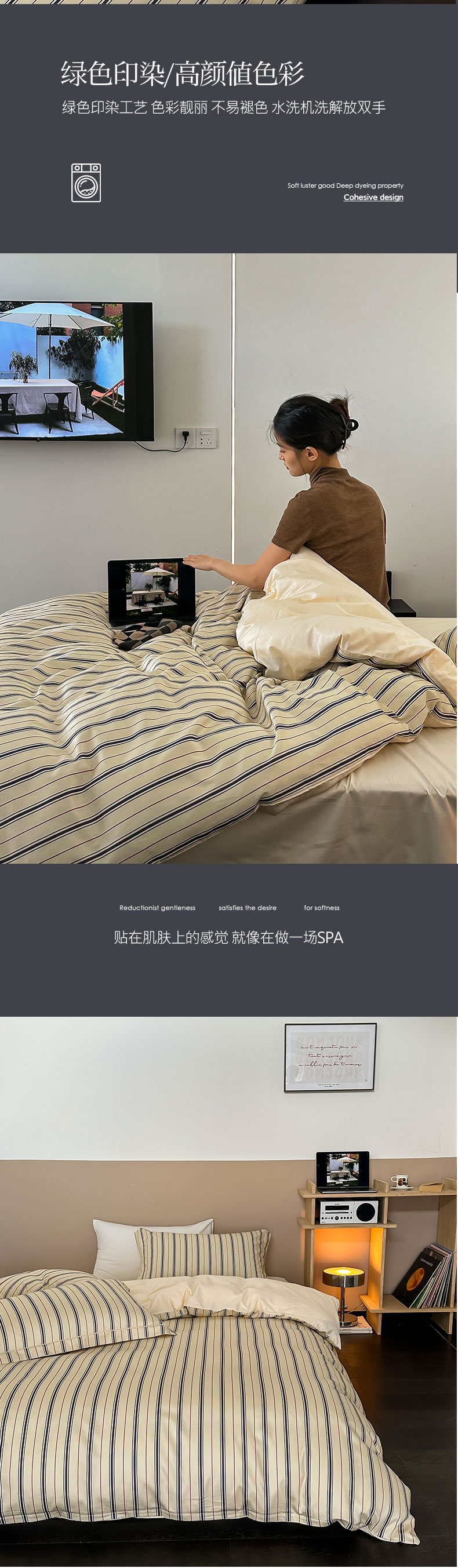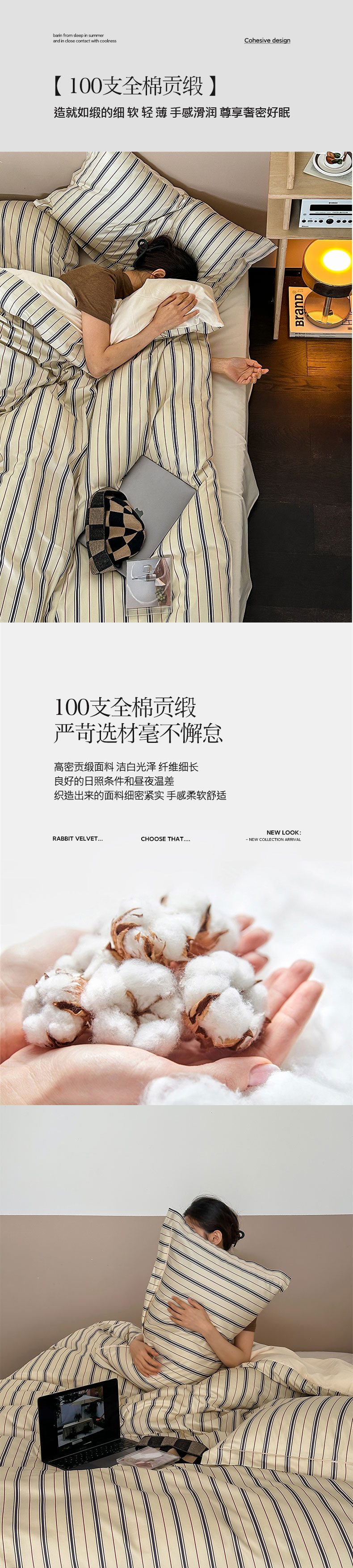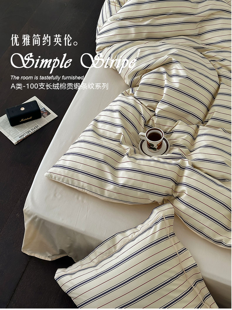 当前位置: 91家纺网 > 商品网购 > 床品套件 > 四件套 > 贡缎全棉四件套 > ROZ home 蕊姿家居 2023新款全棉贡缎四件套 米兰条纹