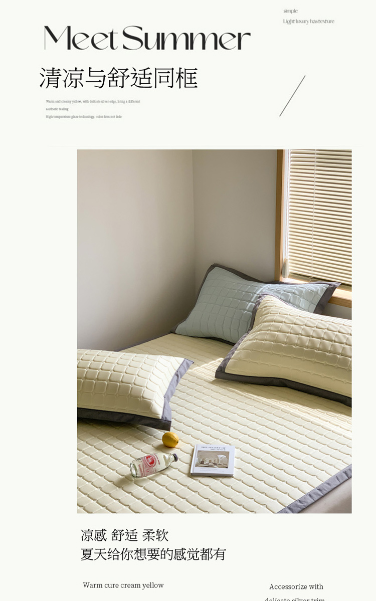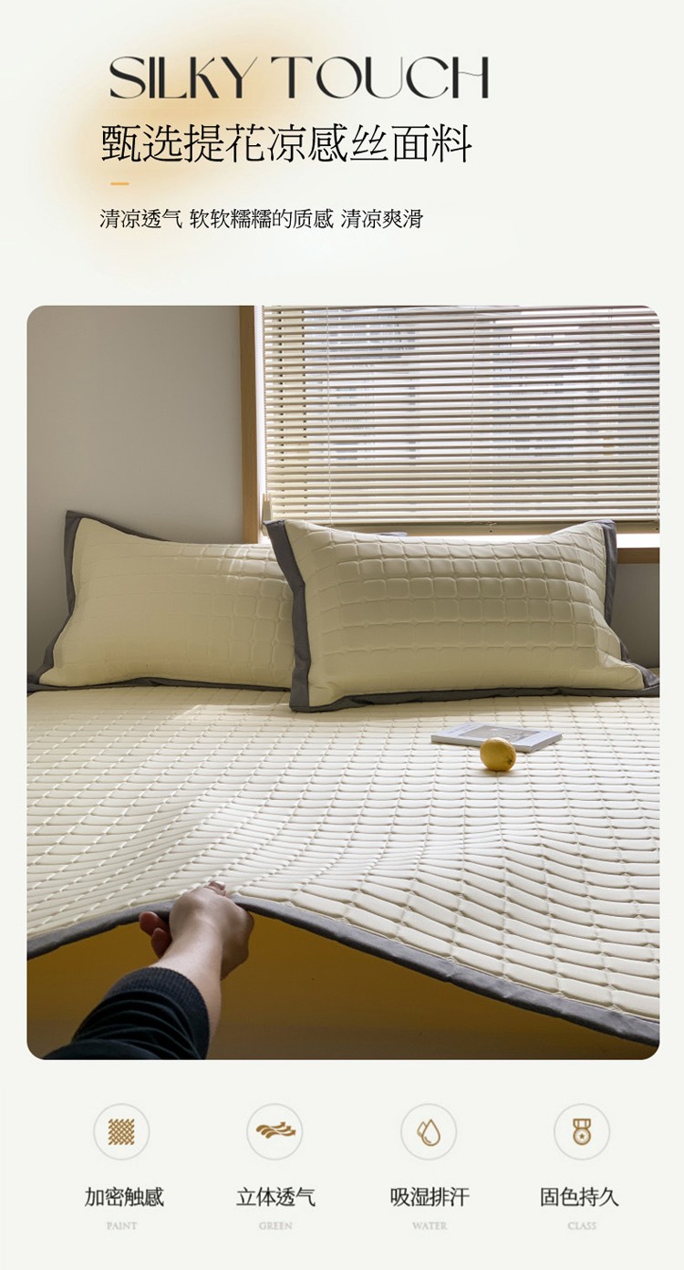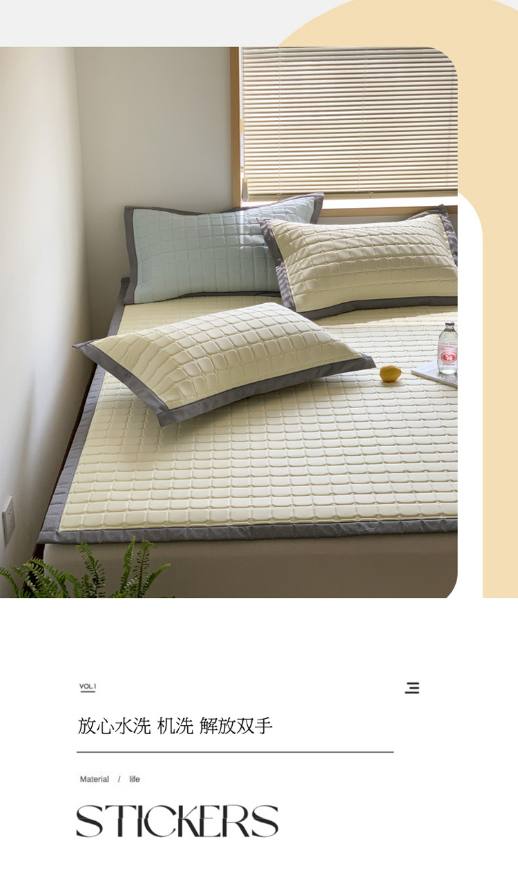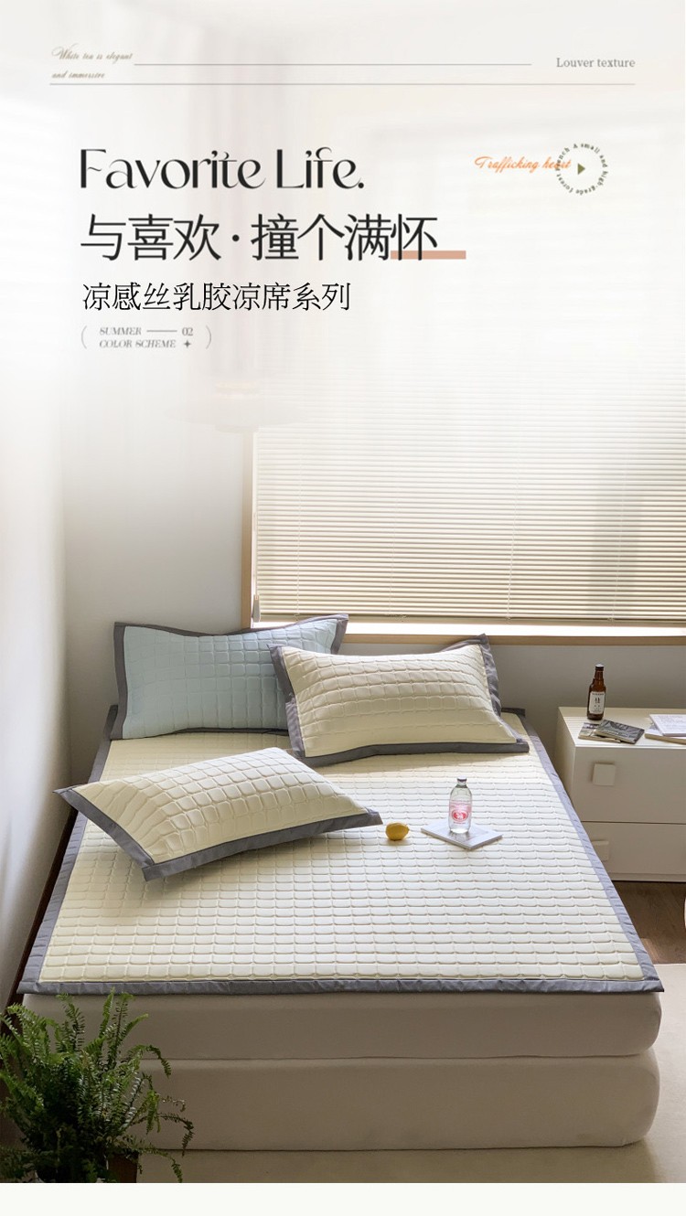 柒月 2023新款简约格乳胶凉席 简约格-米