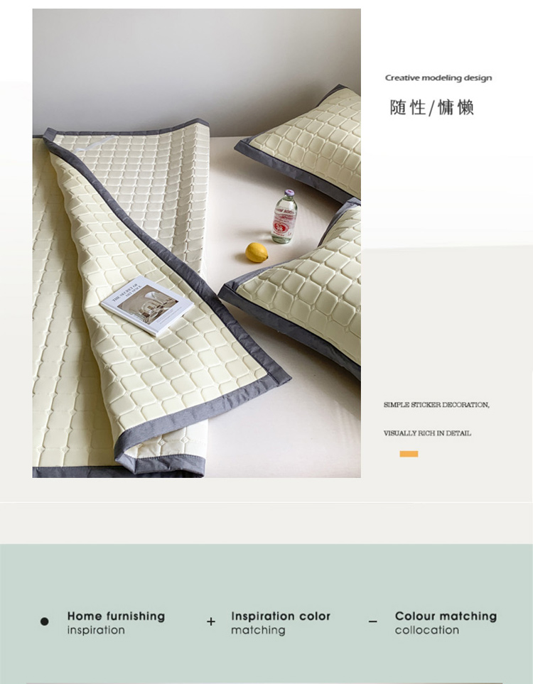 商品名称:柒月 2023新款简约格乳胶凉席 简约格-米