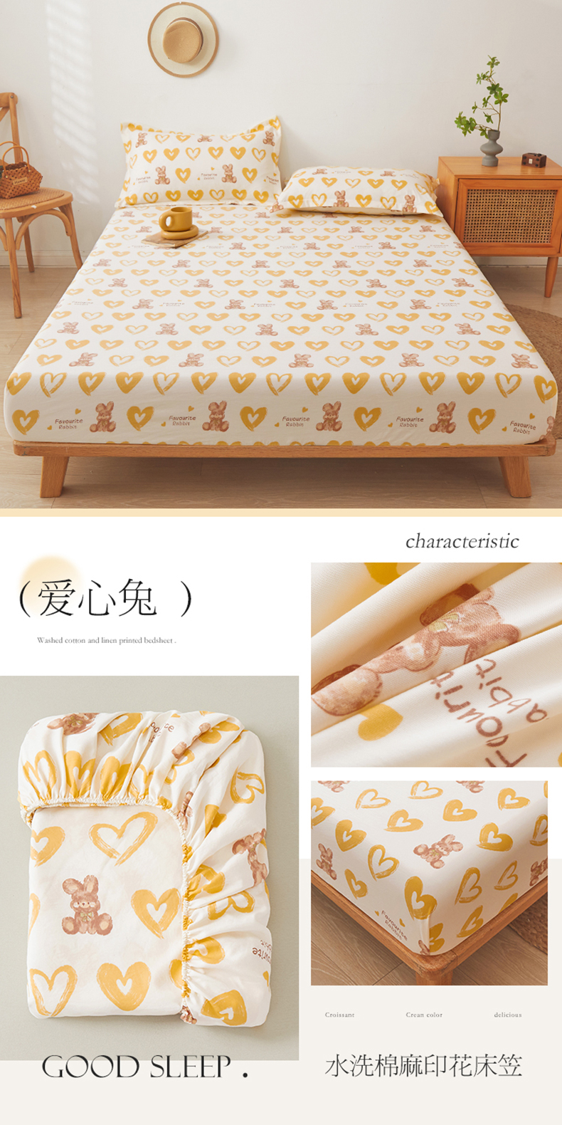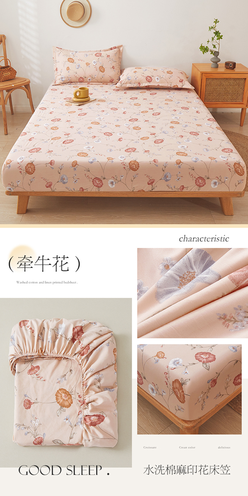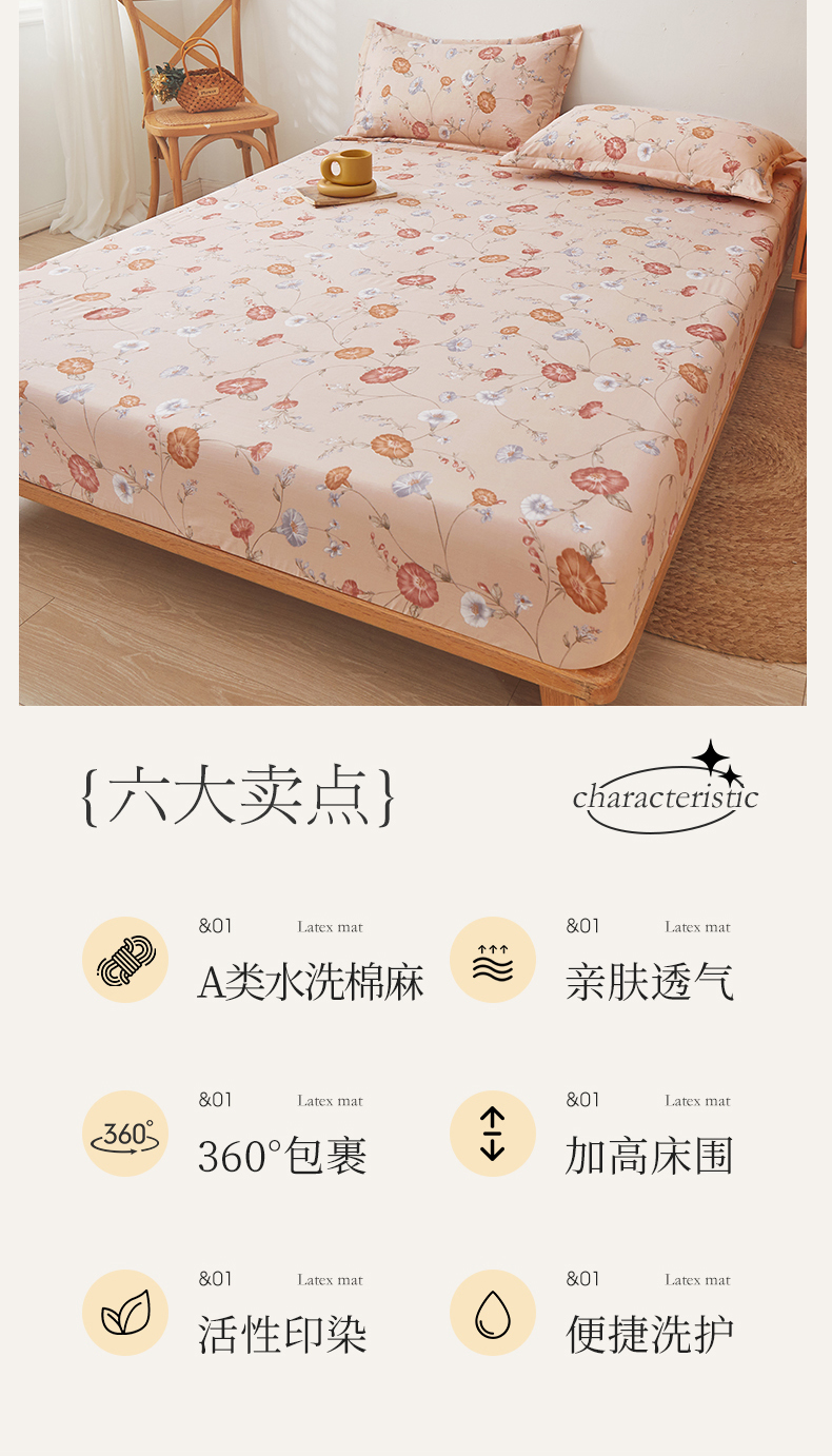 (总)梦舒羽 2025新款水洗棉麻防尘抗菌床笠全包床罩