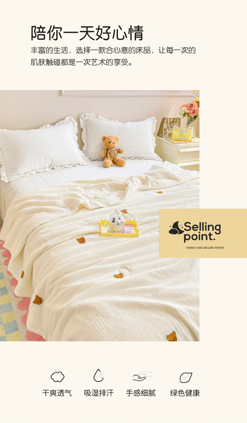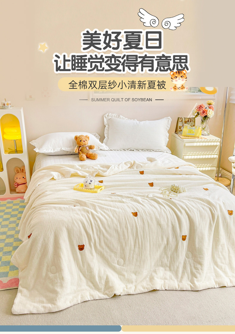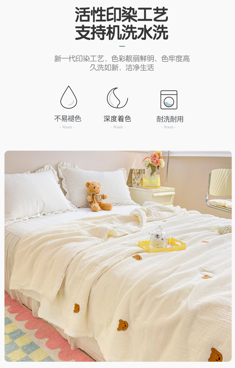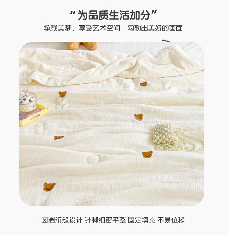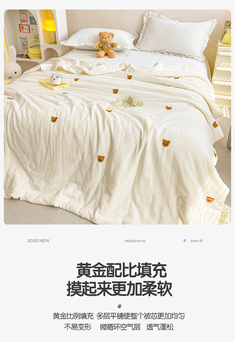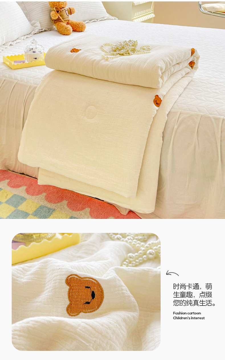 商品名称:N先生 2023新款全棉双层纱皱皱纱小清新夏被 可爱熊