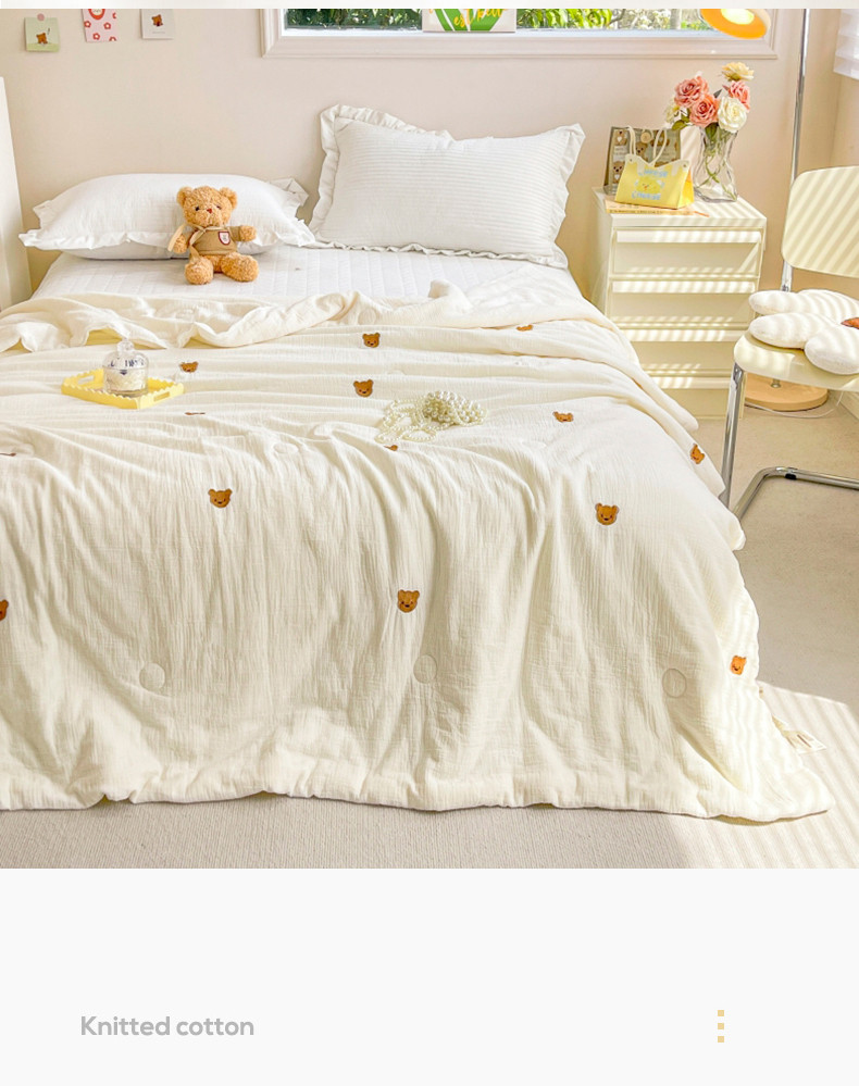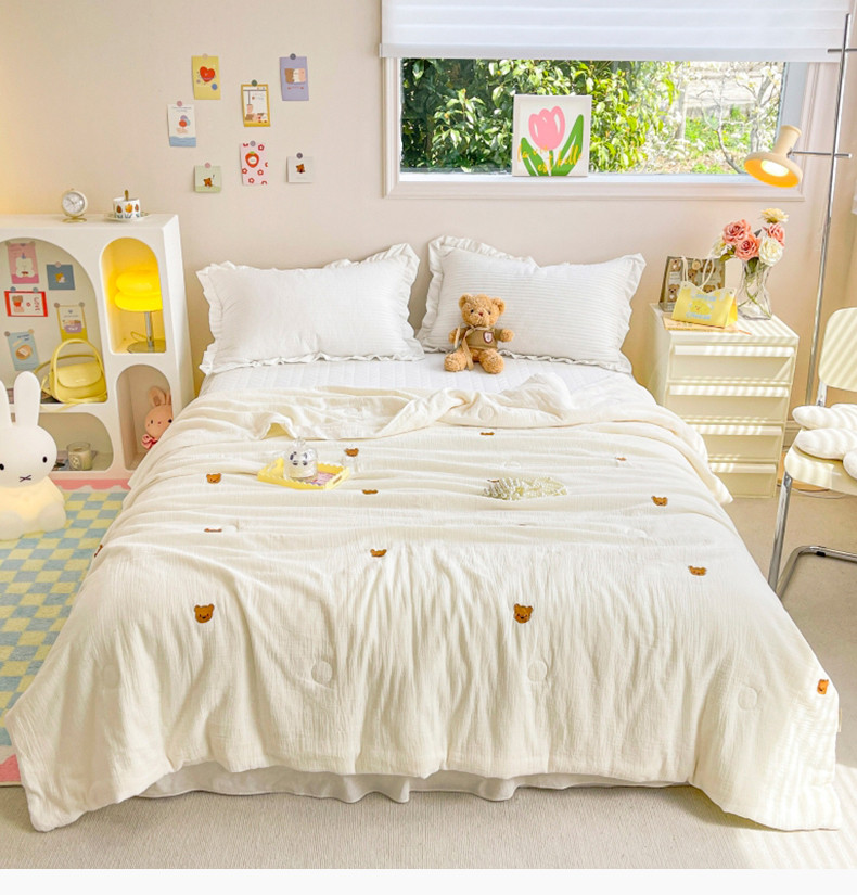 N先生 2023新款全棉双层纱皱皱纱小清新夏被 可爱熊