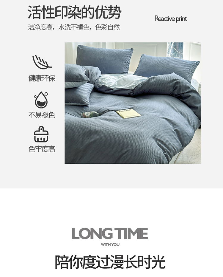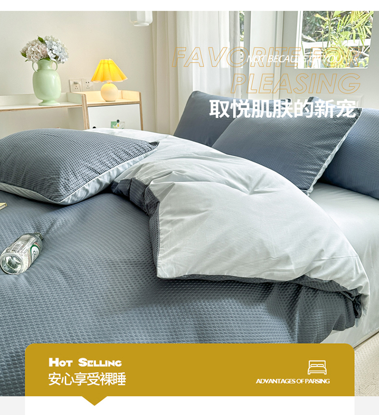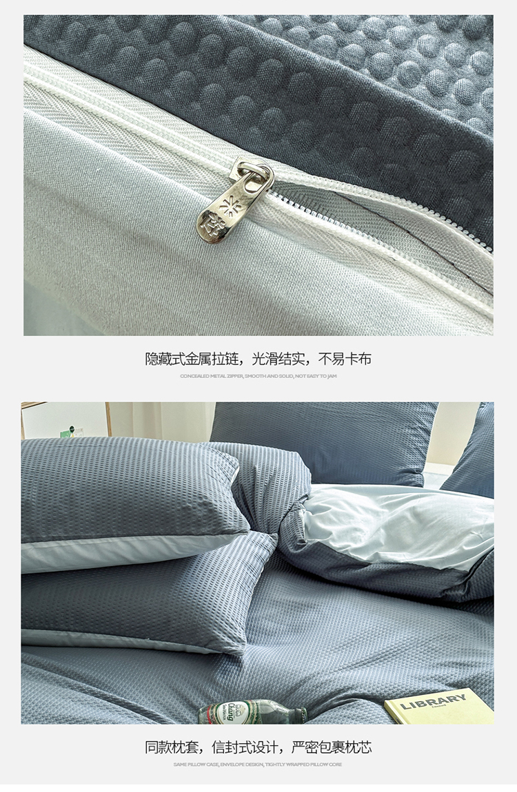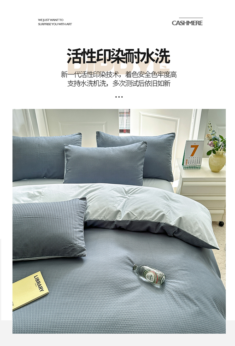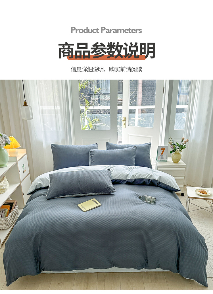 商品名称:米粒家纺 2023新款AB版华夫格四件套 石墨兰