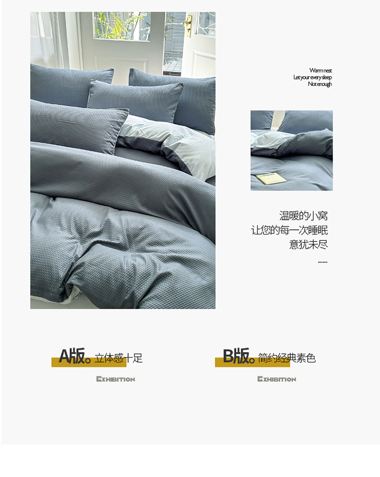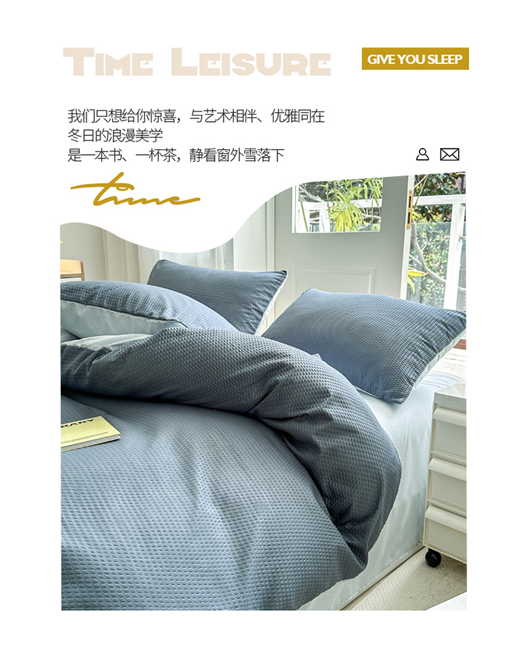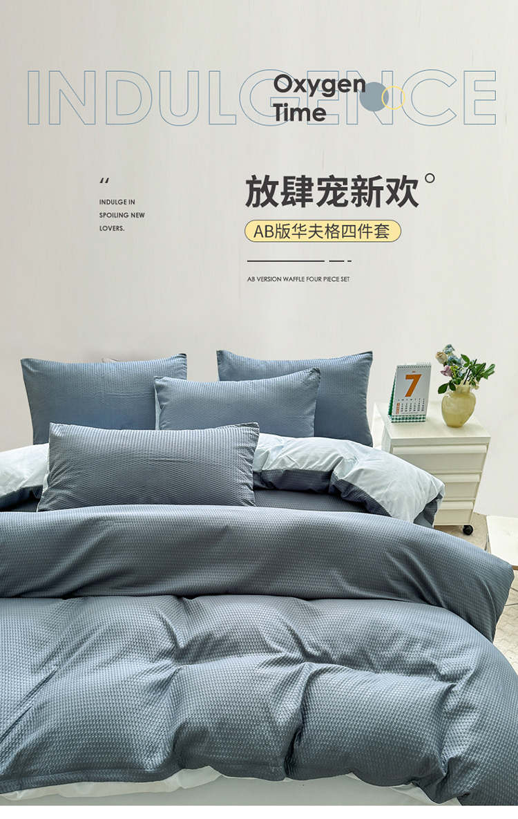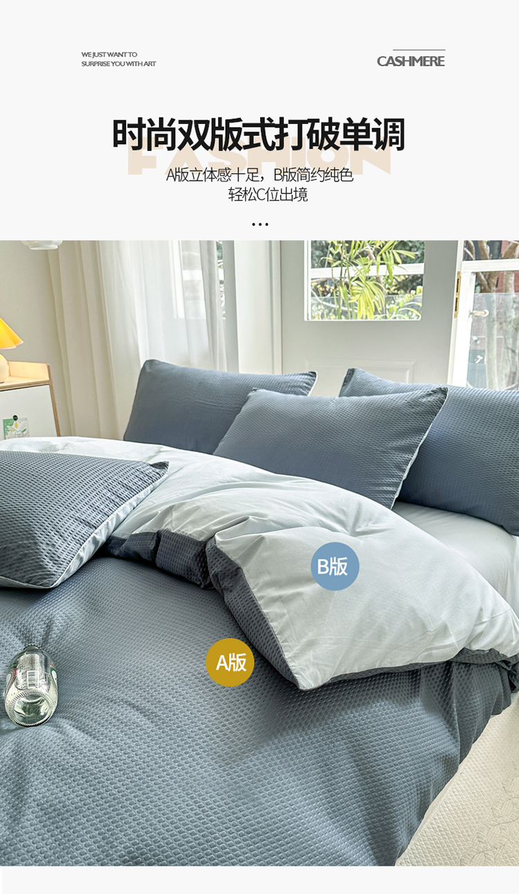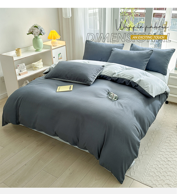 米粒家纺 2023新款AB版华夫格四件套 石墨兰