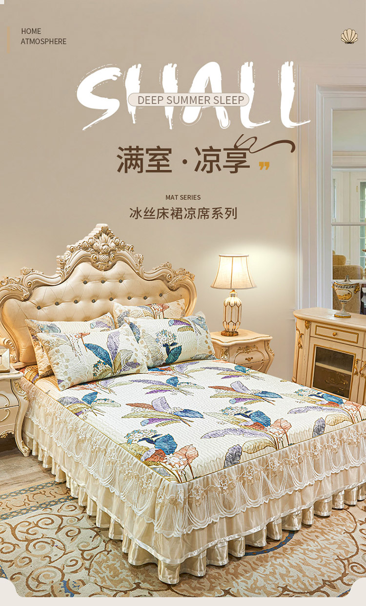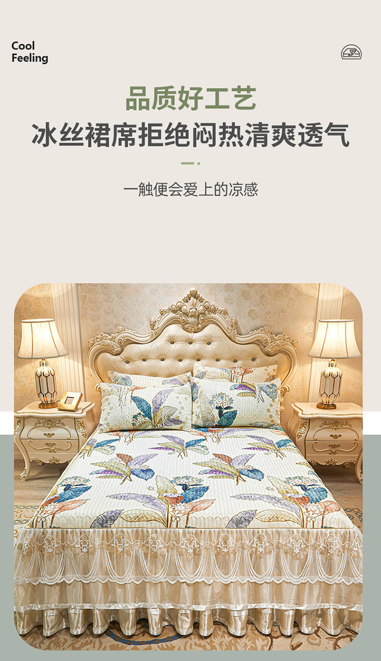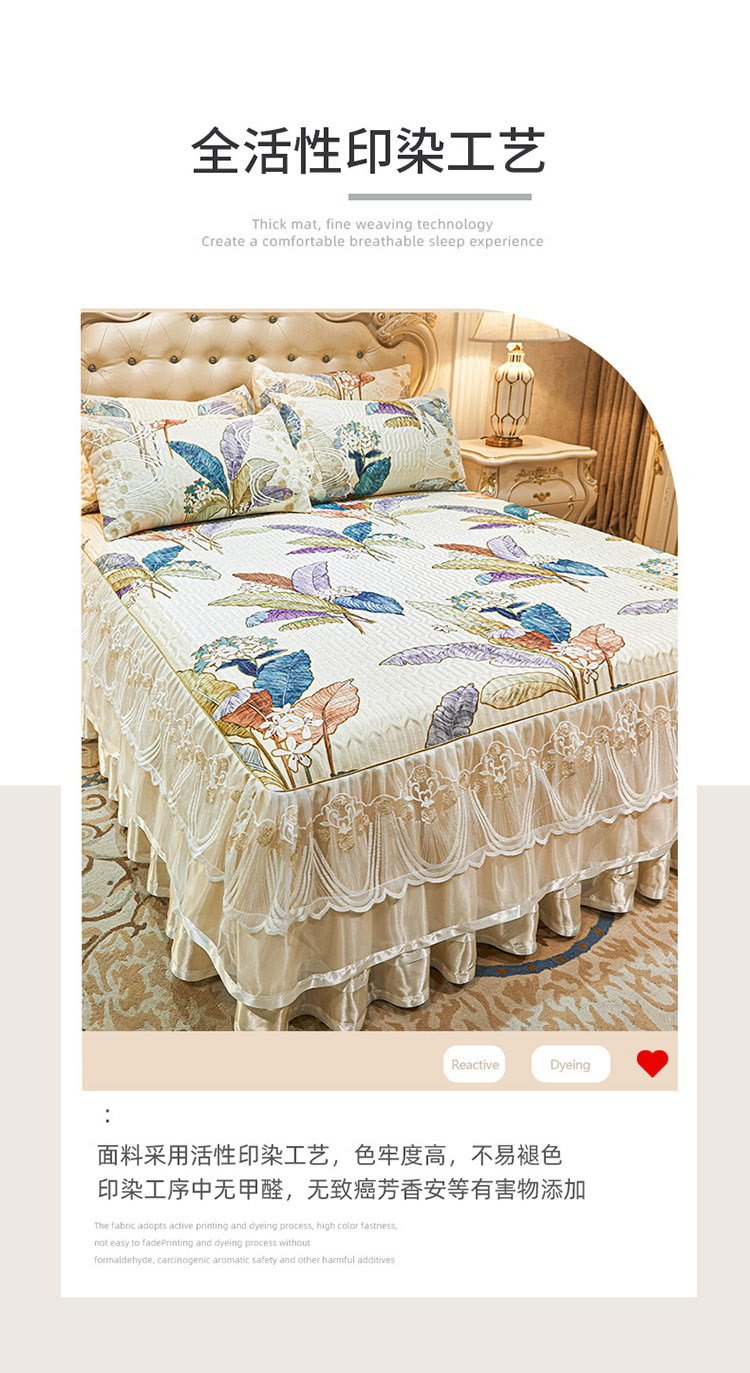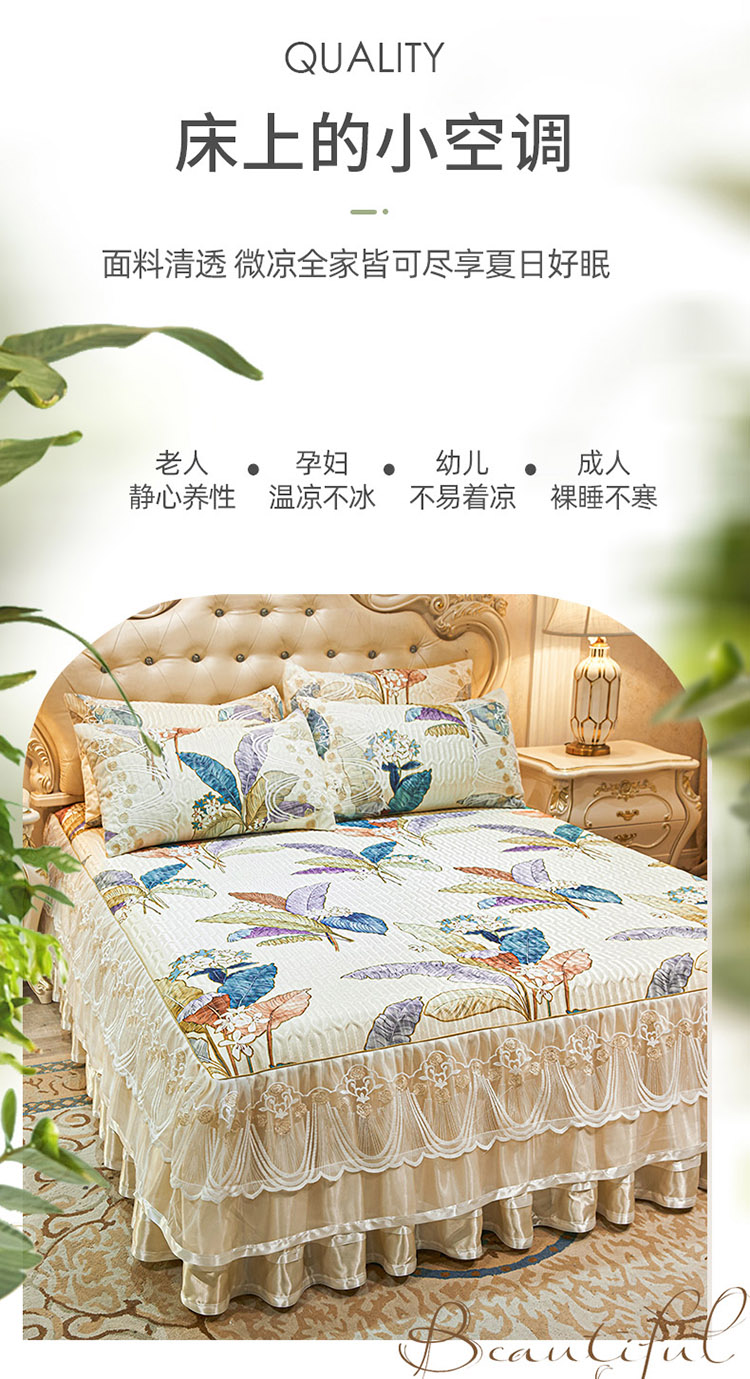 商品名称:恋尚 2024新款韩式夹棉床裙凉席三件套 花叶倾城