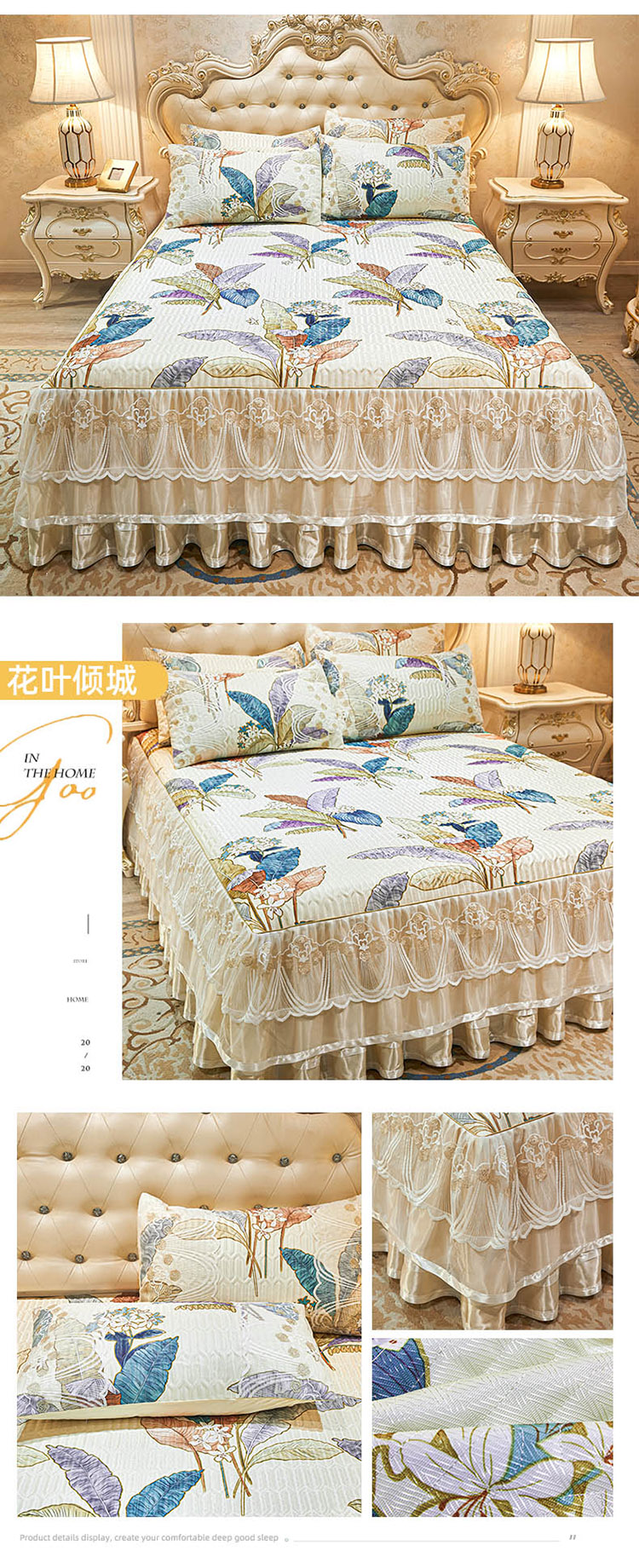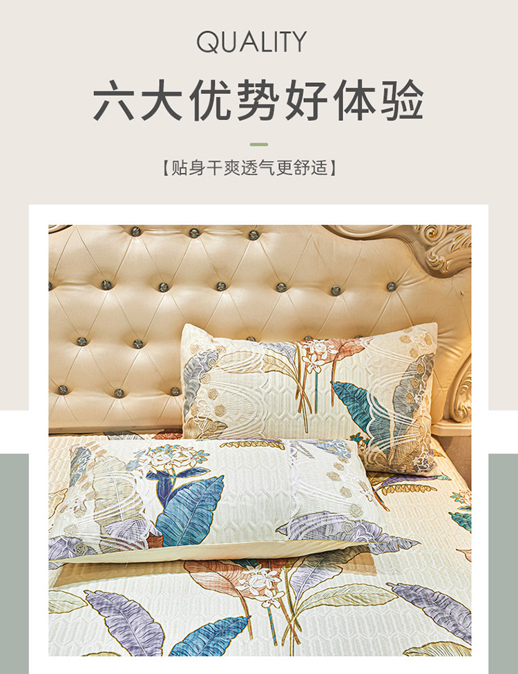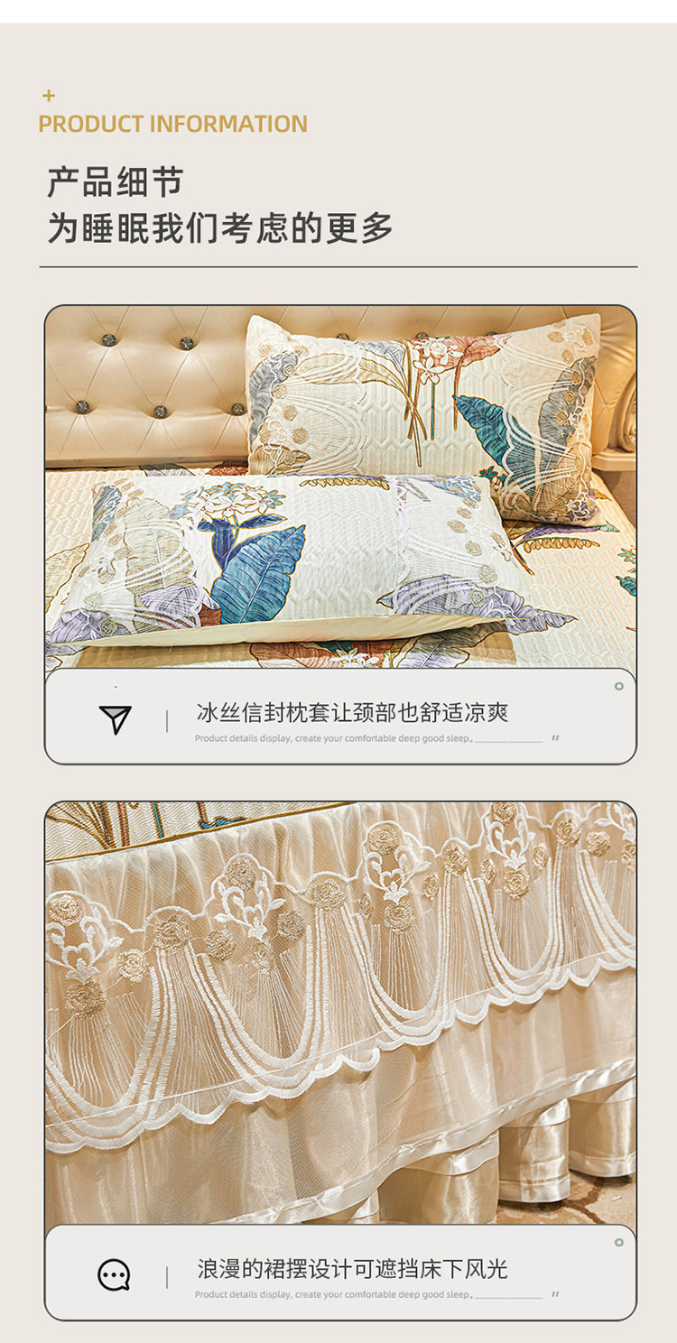 商品名称:恋尚 2024新款韩式夹棉床裙凉席三件套 花叶倾城