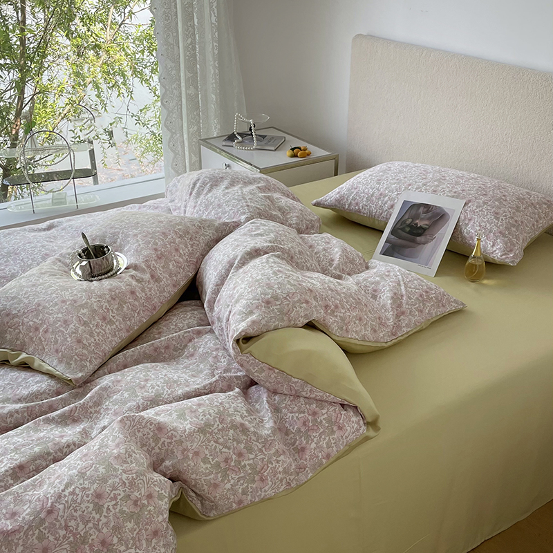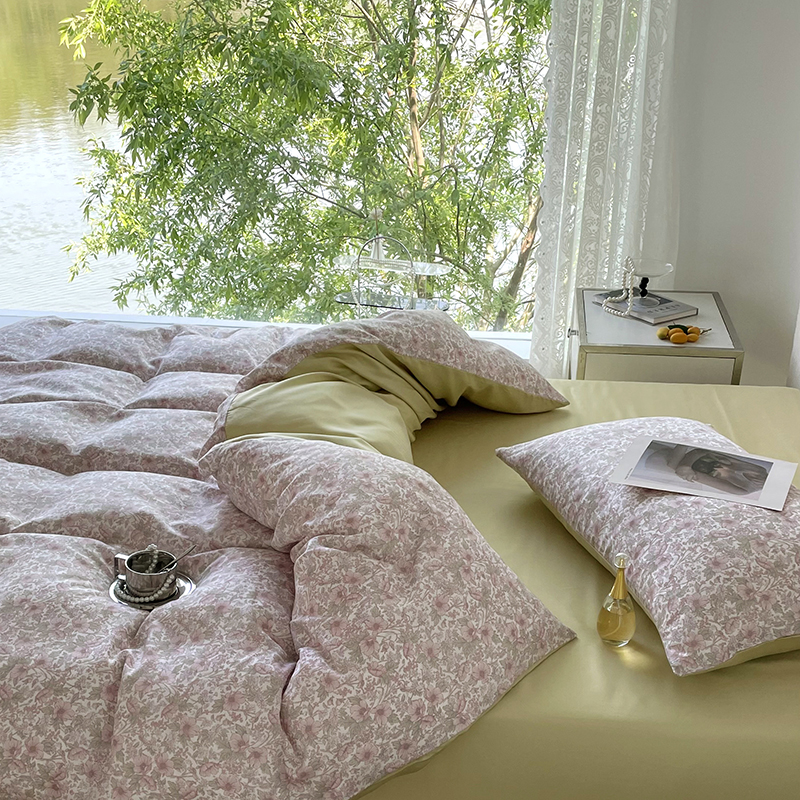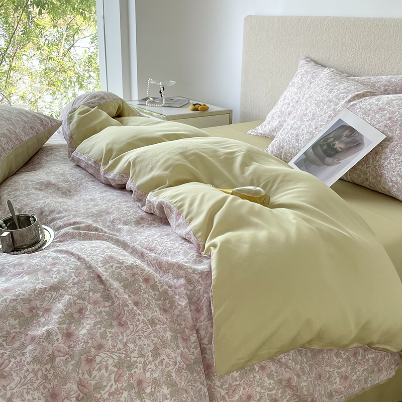 (总)千朵 2025新款全棉纯棉色织提花水洗棉四件套 富士系列,富士果绿,富士灰,富士奶黄,富士浅兰,富士浅紫,富士森绿,富士雾兰