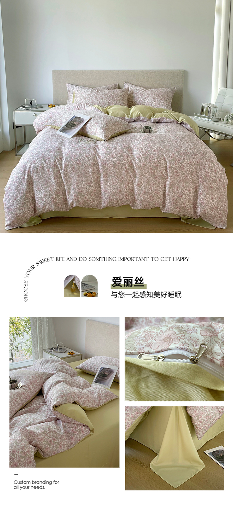 (总)千朵 2025新款全棉磨毛四件套,浪漫人生粉,浪漫人生米,香漫豆沙,茵然豆沙,茵然咖,珍妮咖,珍妮绿
