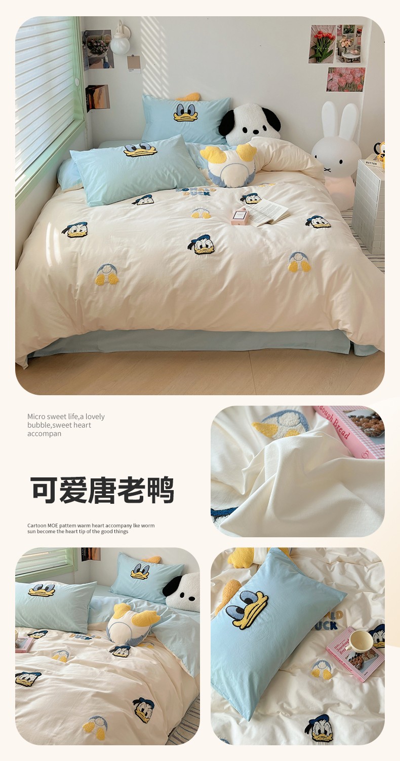 当前位置: 91家纺网 > 商品网购 > 床品套件 > 四件套 > 全棉活性四件套 > 佰亿莱 2024直播新款全棉色织水洗棉毛巾绣迪士尼系列 可爱唐老鸭