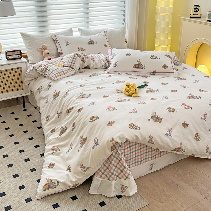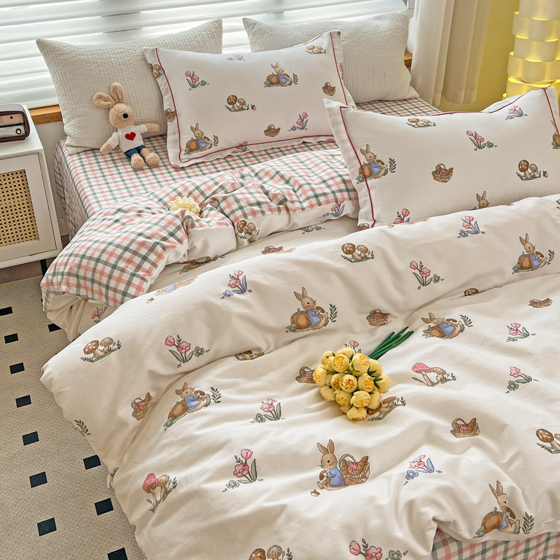 (总)乐童家纺 2026新款全棉纯棉拼接花边小清新工艺款四件套,彩虹木马,春日小兔,花田兔兔,凯莉梦境,口袋故事,浪花轻歌,毛线彩虹,梦境手账,千禧少女咖,少女日记,心跳瞬间