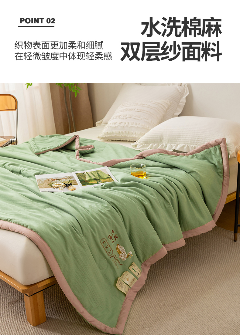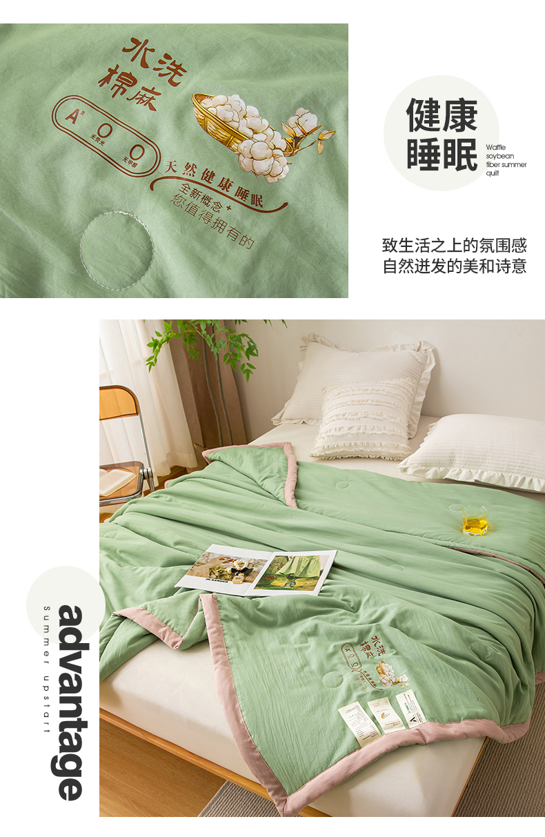 蓝冰家纺 2023新款水洗棉棉麻大豆夏被 豆绿色