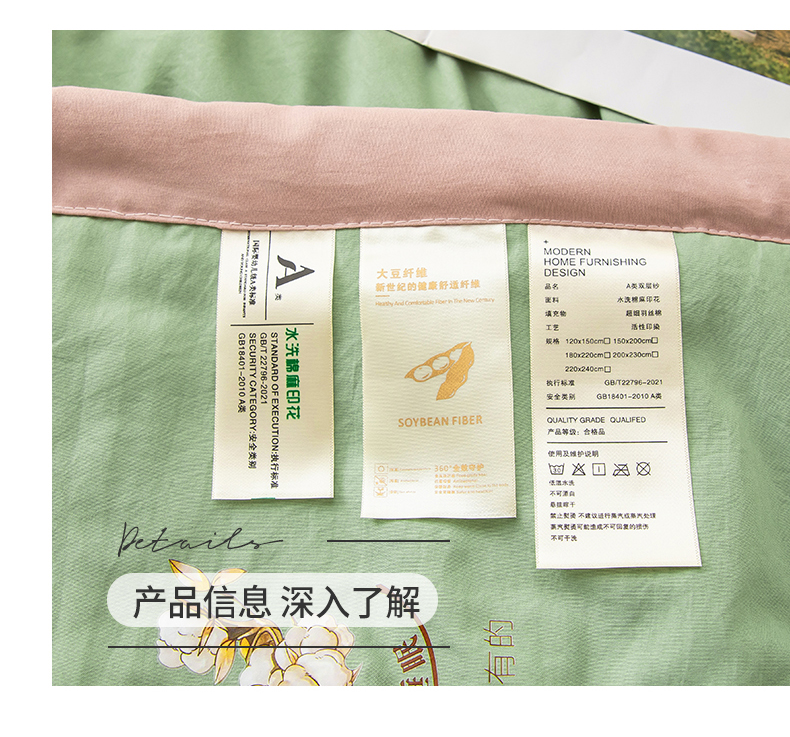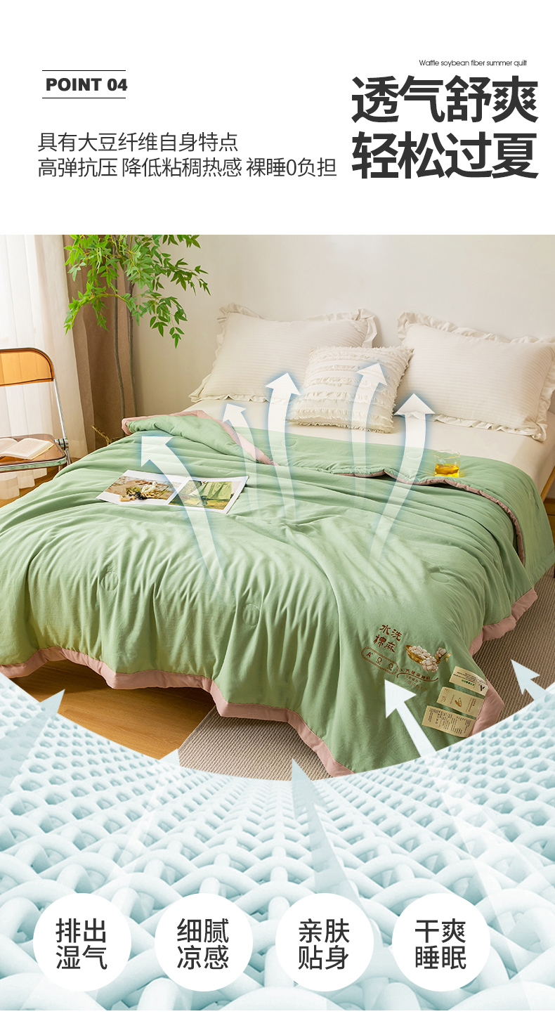 商品名称:蓝冰家纺 2023新款水洗棉棉麻大豆夏被 豆绿色