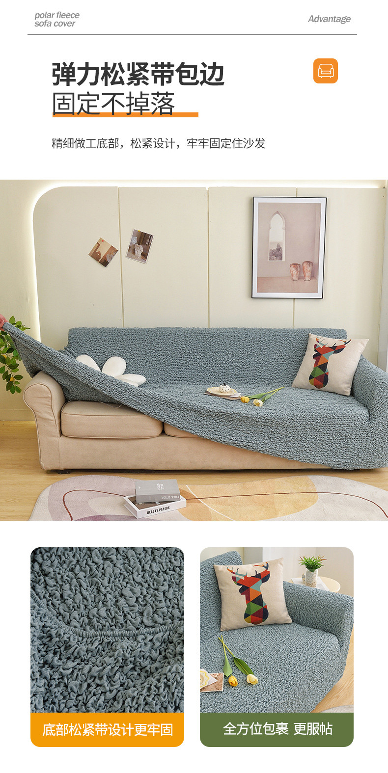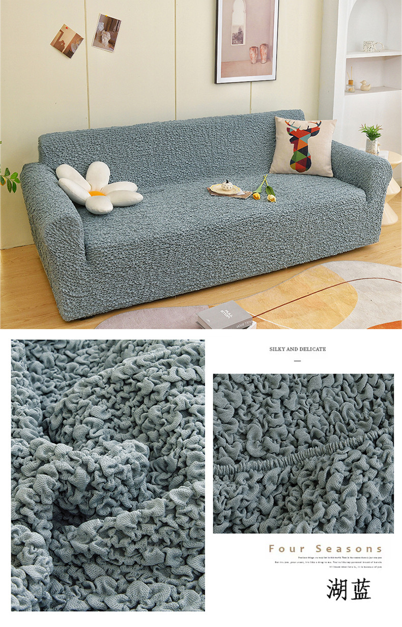 启博家纺 2023新款奶油云纱全包沙发套 湖蓝