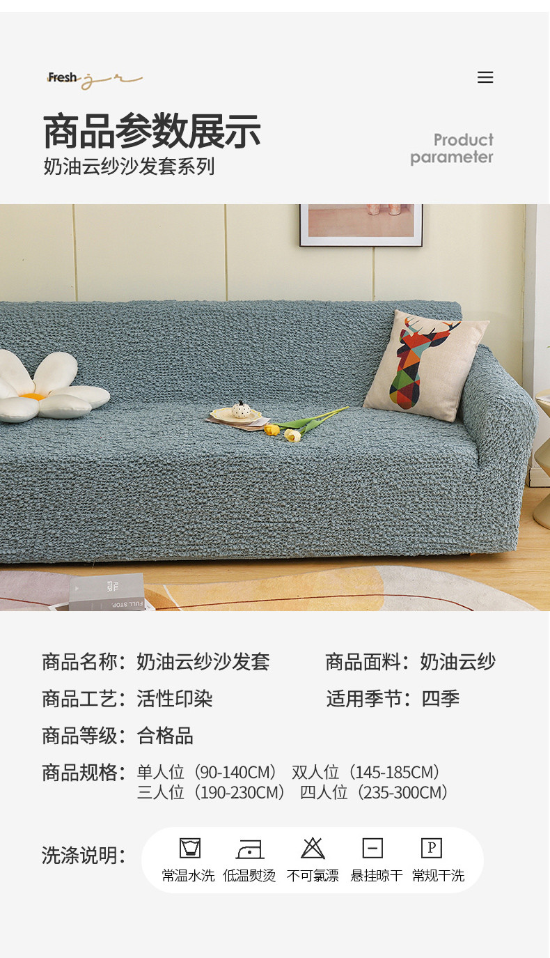 商品名称:启博家纺 2023新款奶油云纱全包沙发套 湖蓝