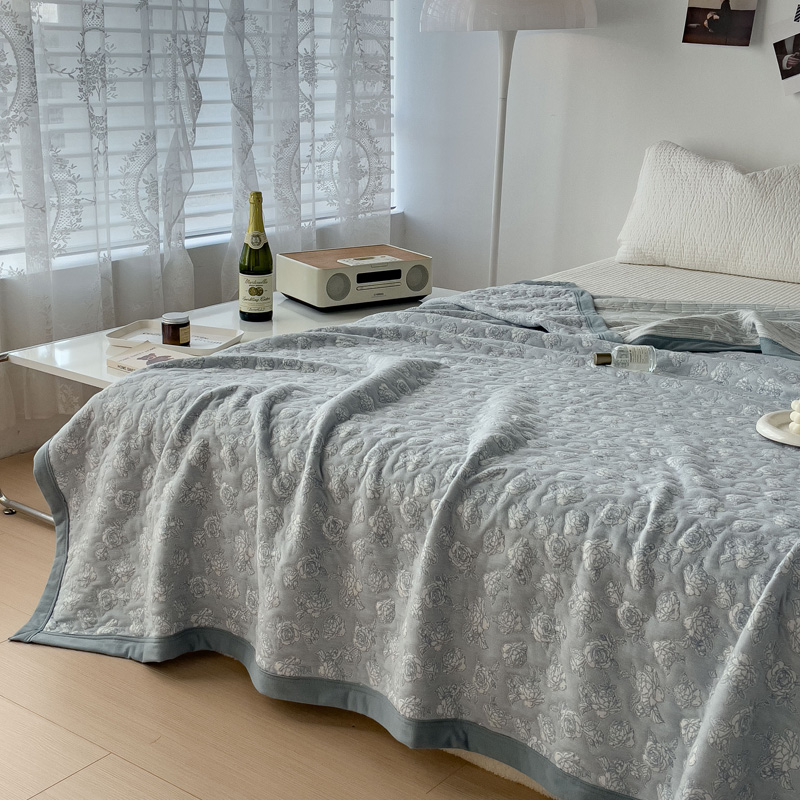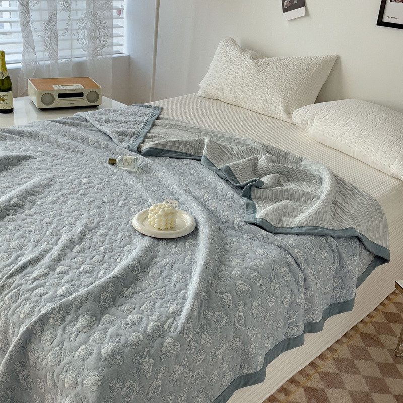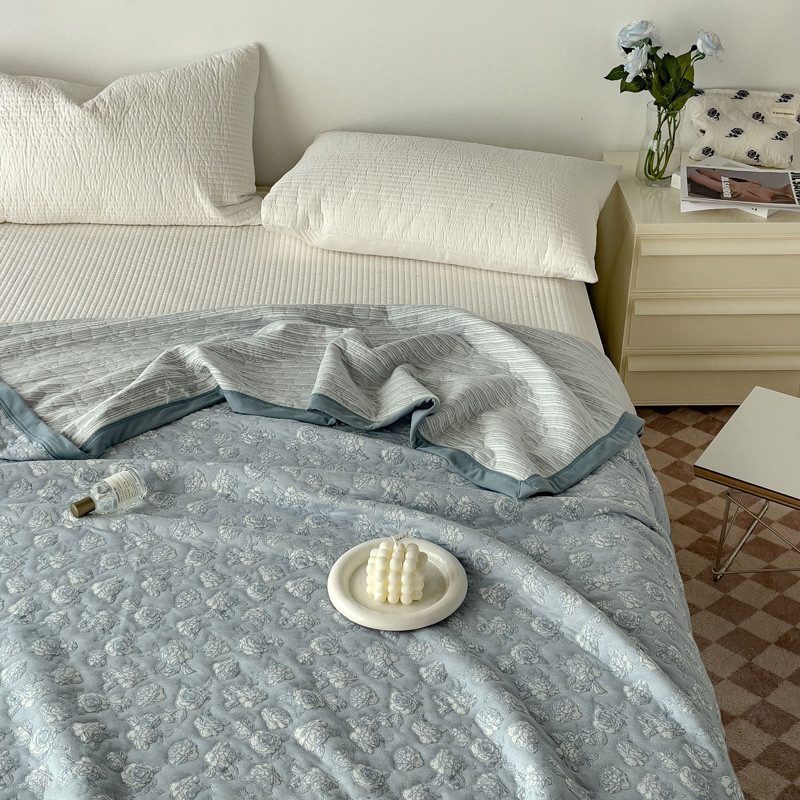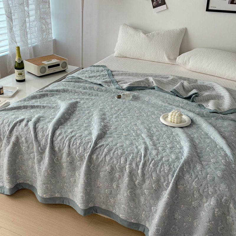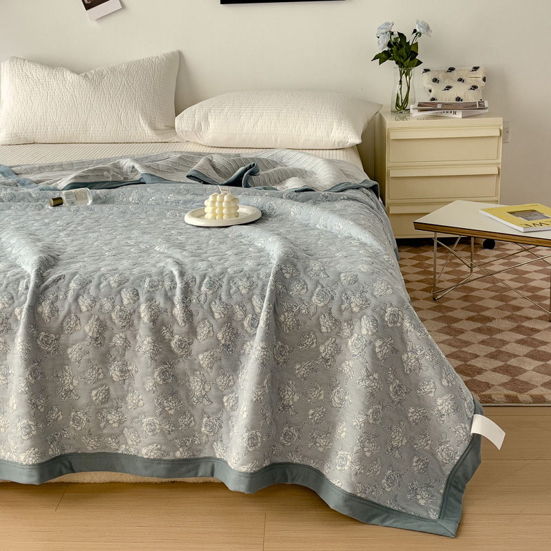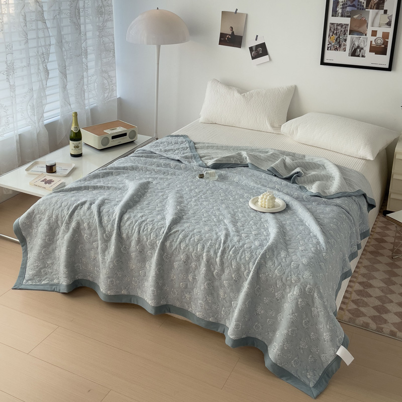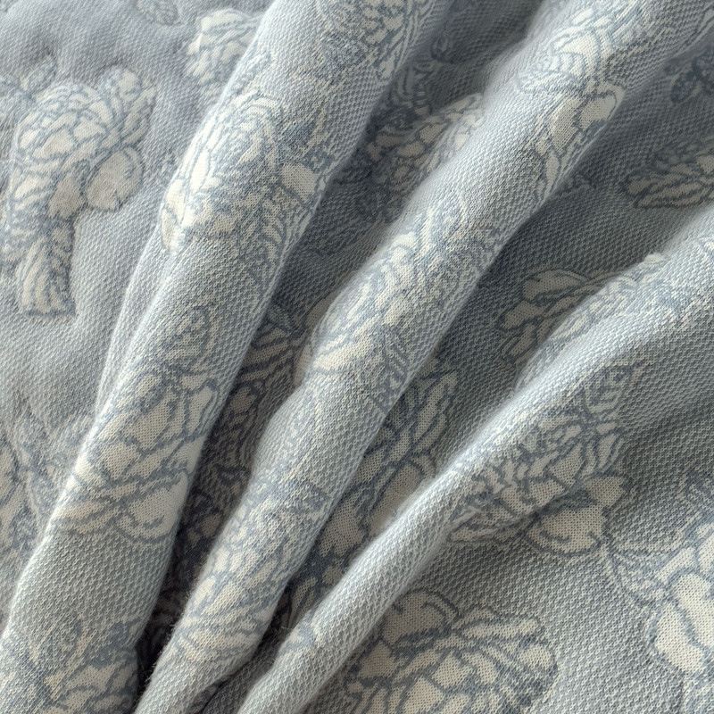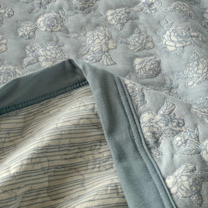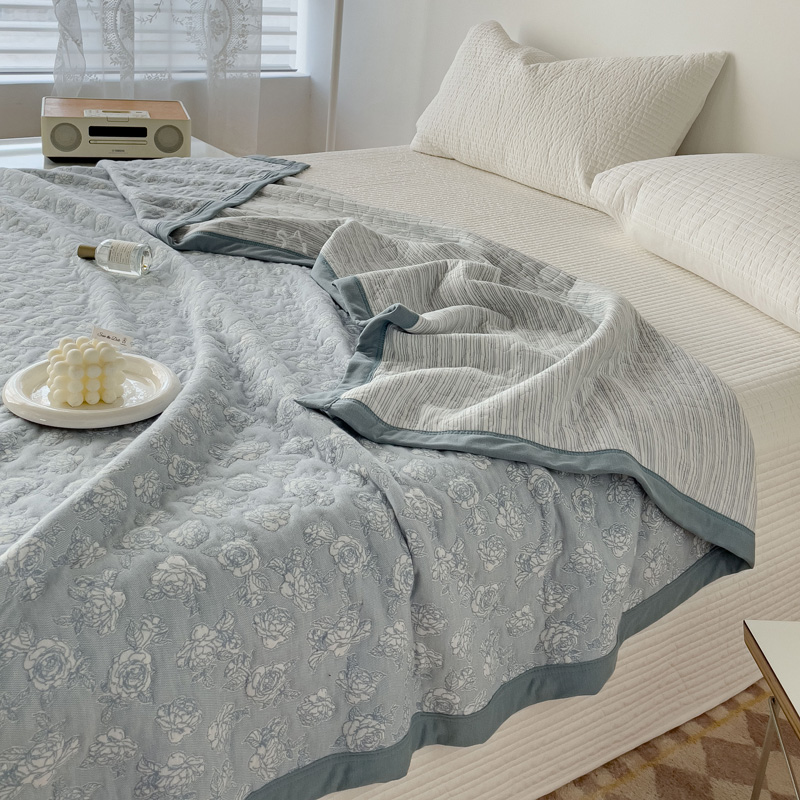 商品名称:爱丽丝 2023新款A类全棉针织提花夏被多功能盖毯 蓝色玫瑰