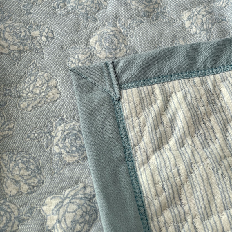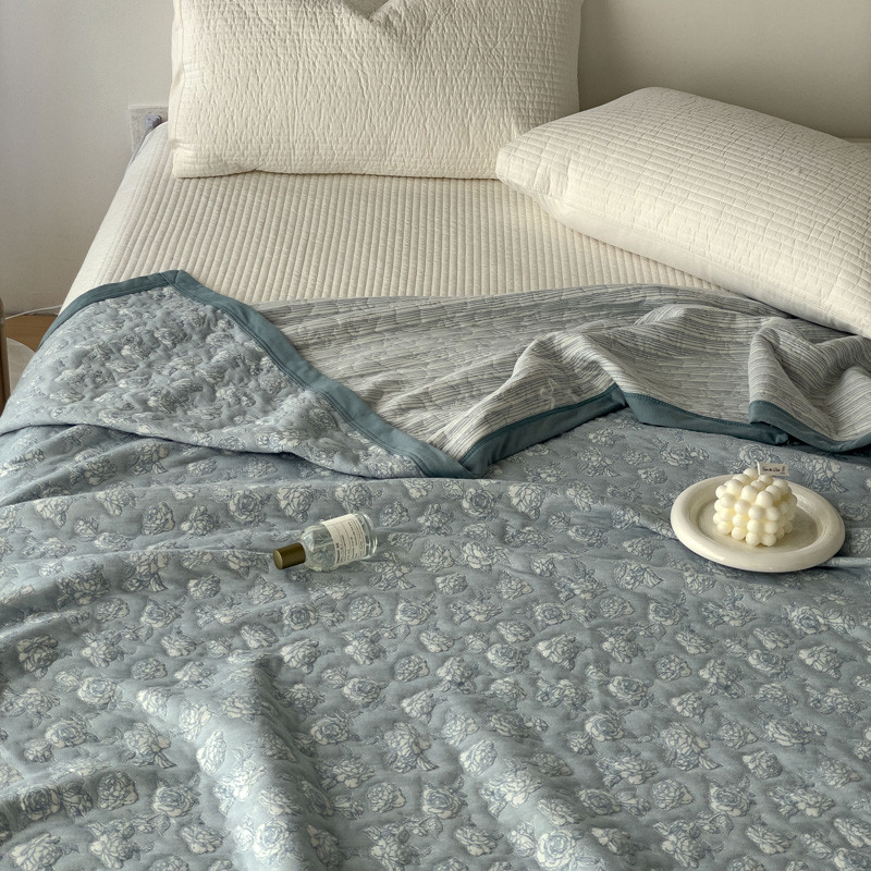 爱丽丝 2023新款A类全棉针织提花夏被多功能盖毯 蓝色玫瑰