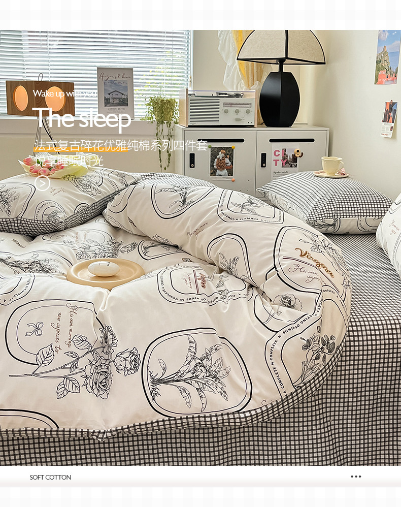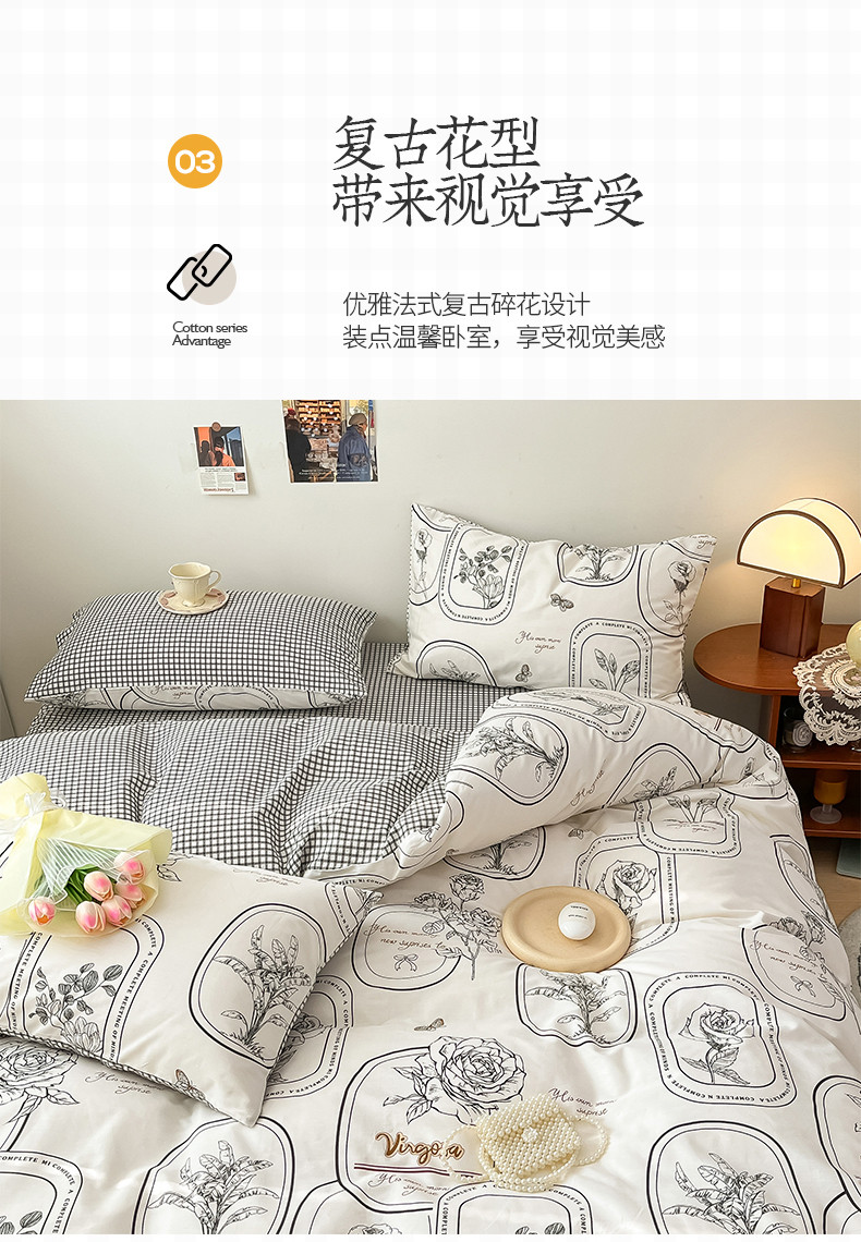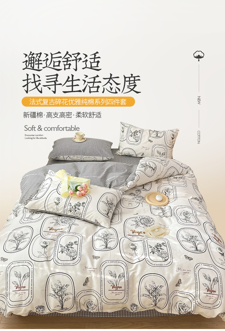 桃子 2023新款法式复古碎花优雅纯棉系列四件套-场景一 棉-普拉庄园
