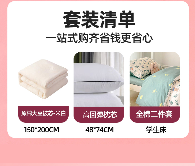 学生床五件套 【三件套+枕芯+春秋被约3斤】 | ¥136.00 |