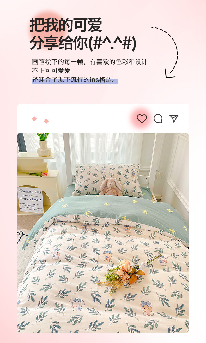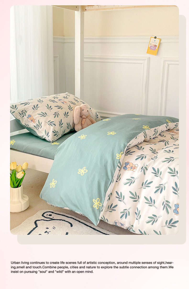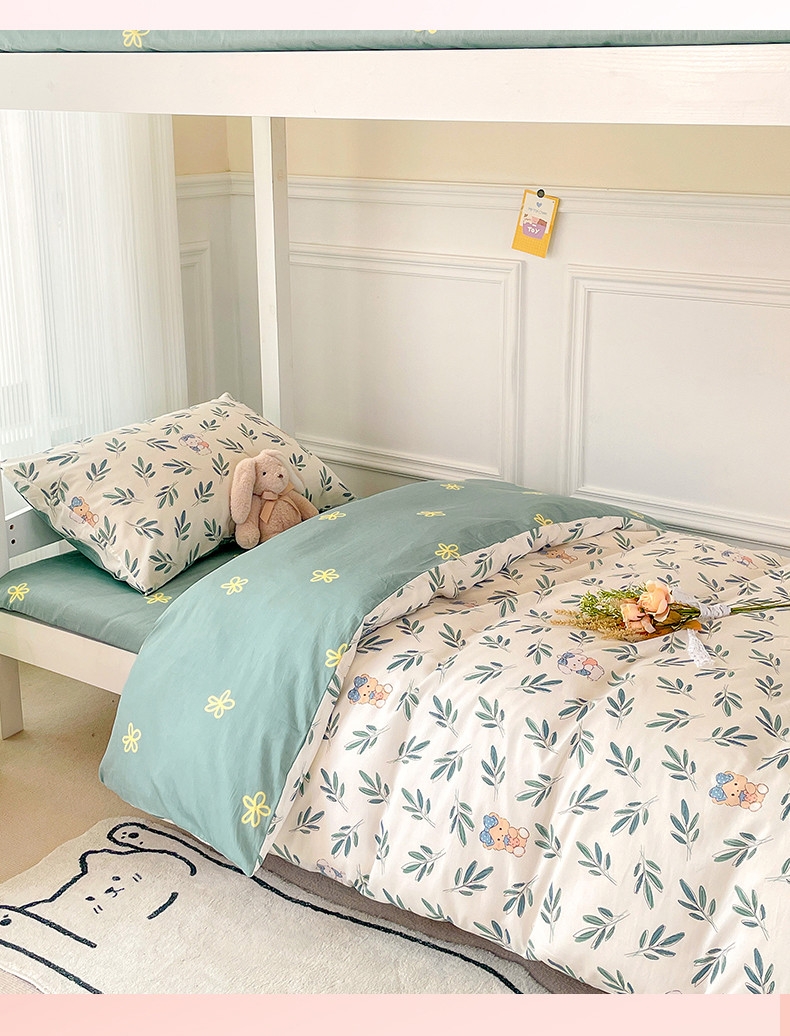 当前位置: 91家纺网 > 商品网购 > 床品套件 > 三件套 > 名兮家居 2023新款全棉印花学生三件套 花花熊