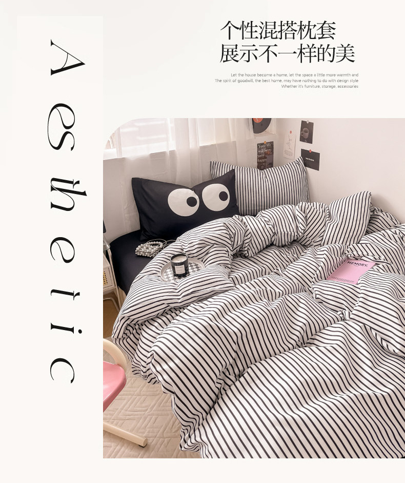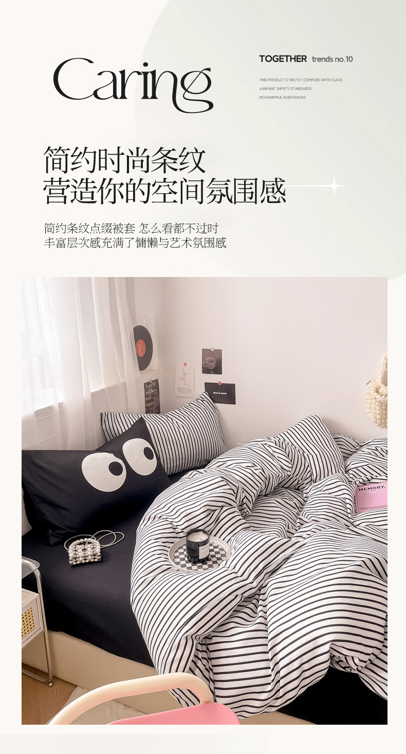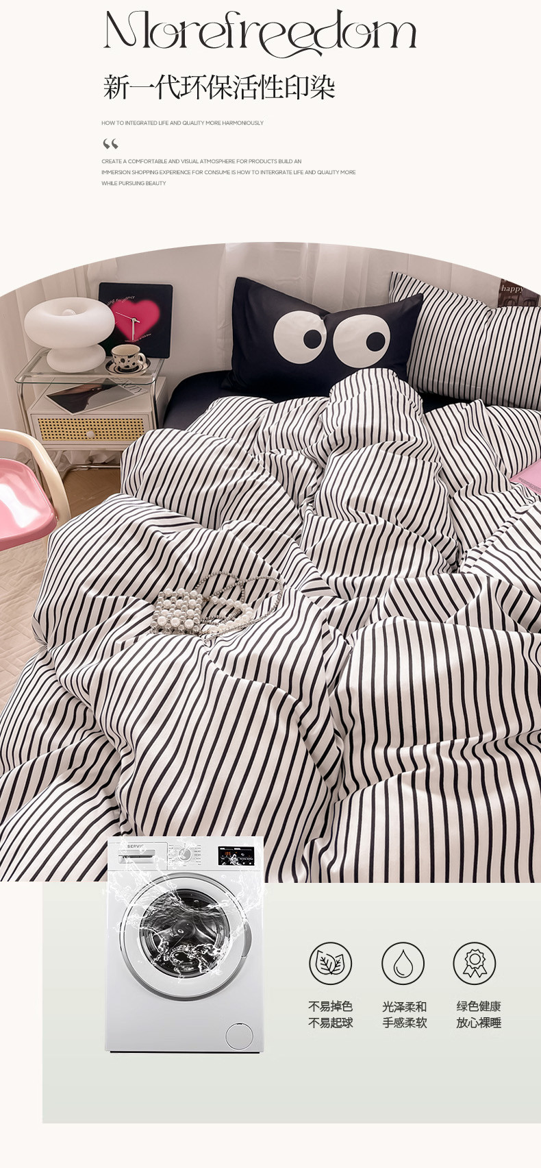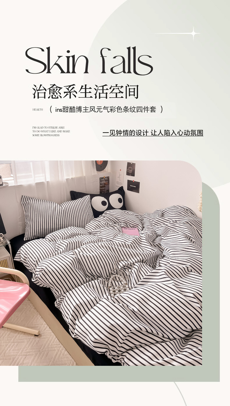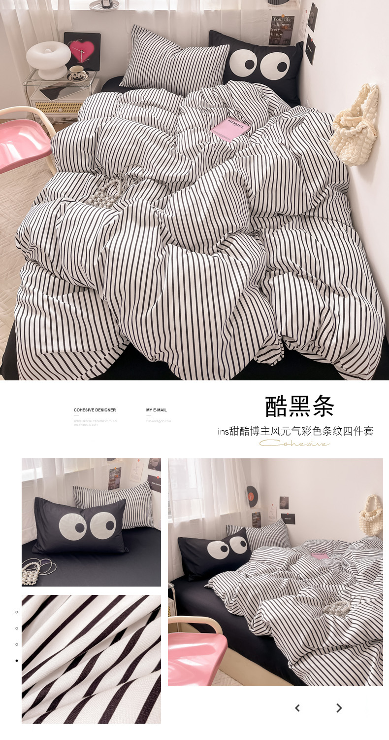 商品名称:花伞家居 2023直播新款ins甜酷博主风元气彩色条纹四件套 酷黑条