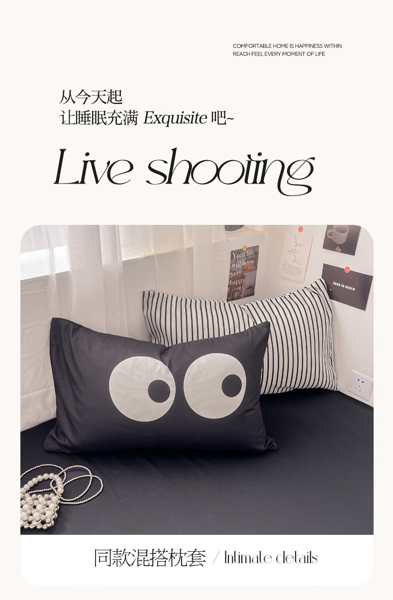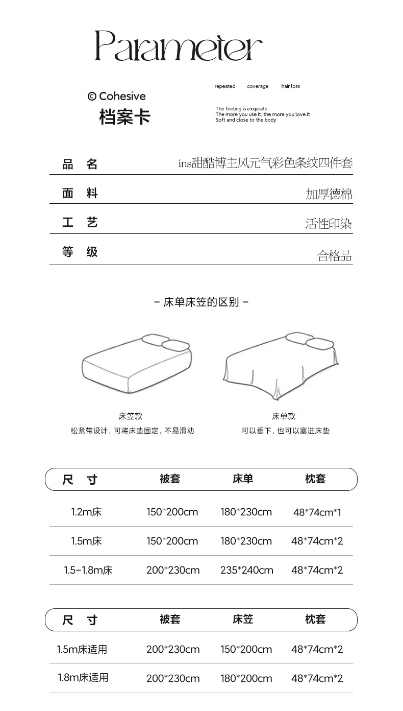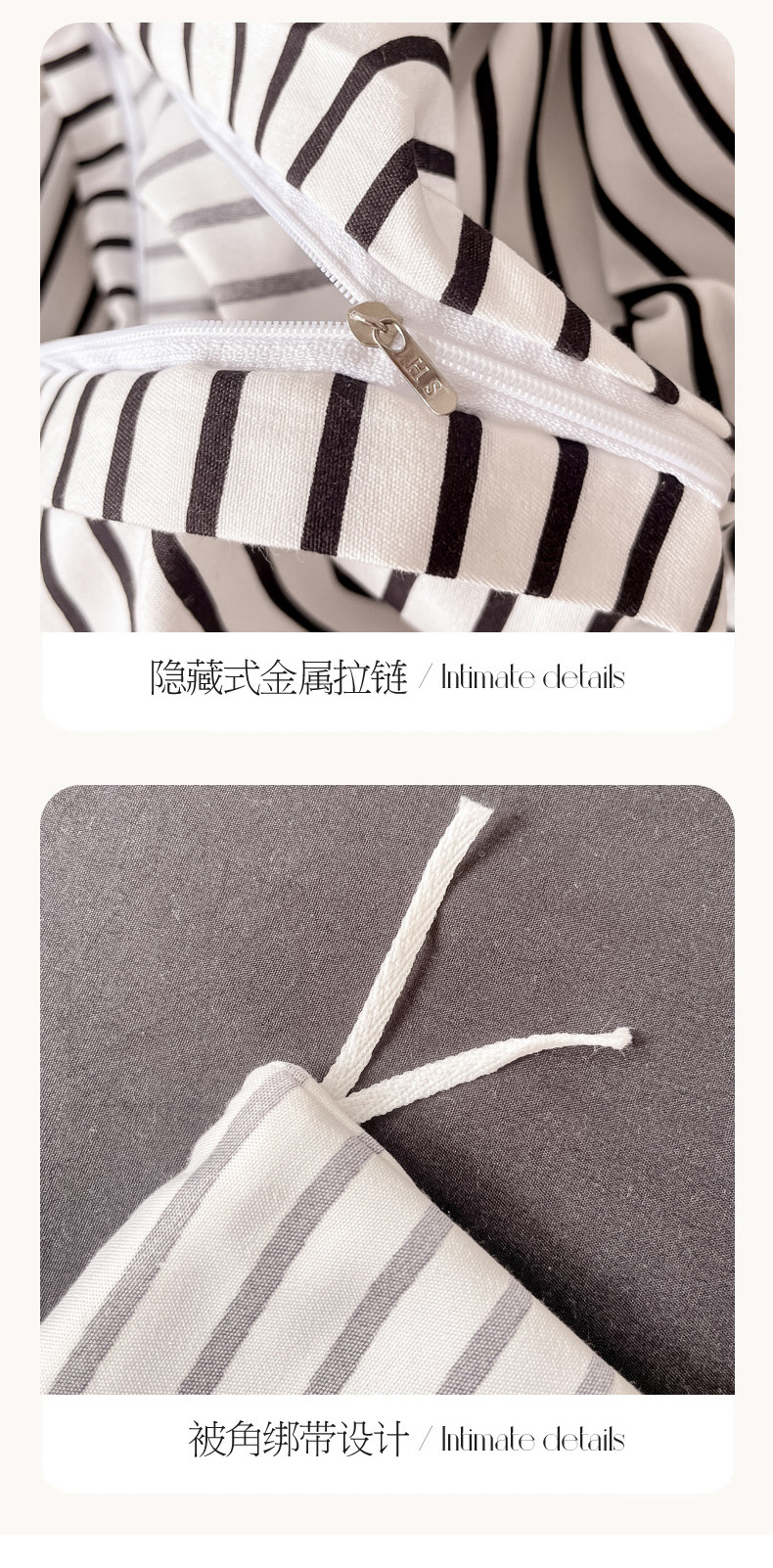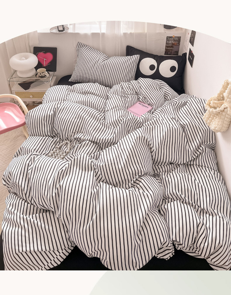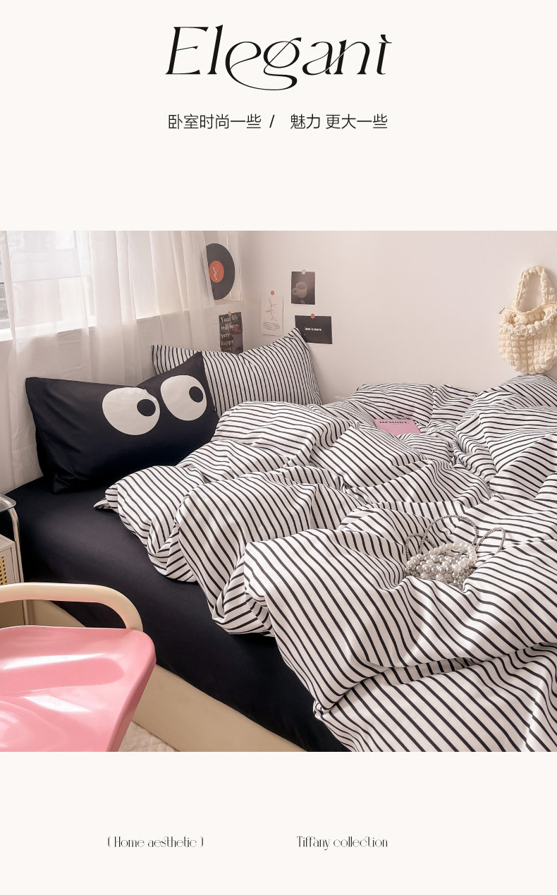 商品名称:花伞家居 2023直播新款ins甜酷博主风元气彩色条纹四件套 酷黑条