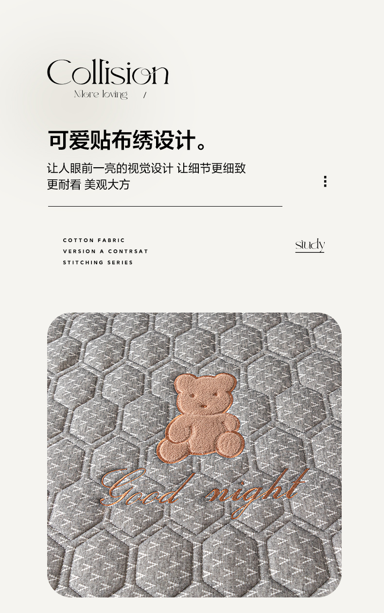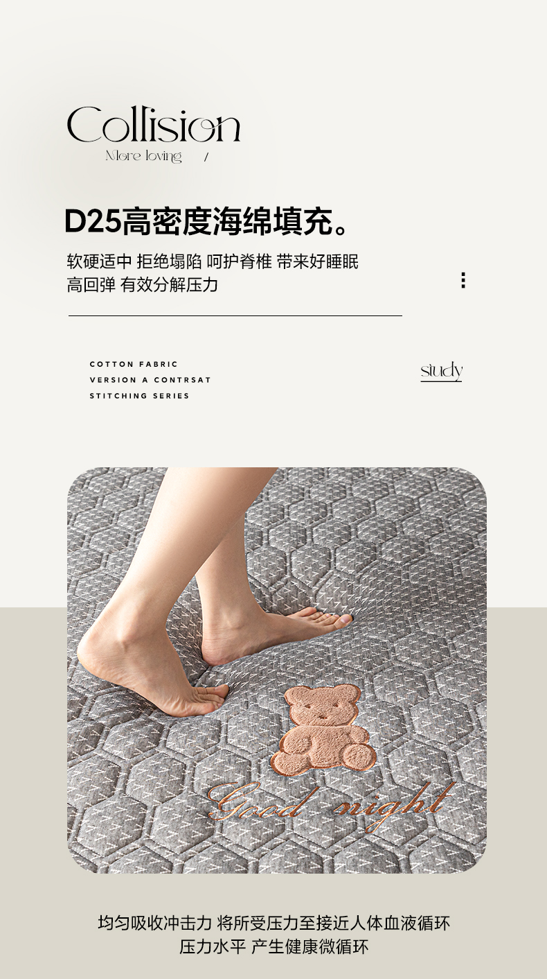 当前位置: 91家纺网 > 商品网购 > 床垫/床褥 > 普通床垫 > 元昊床垫 2025新款乳胶+D25高密度海绵床垫刺绣晚安小熊6公分9公分(永不塌陷)软硬适中 小熊暖灰(9cm)