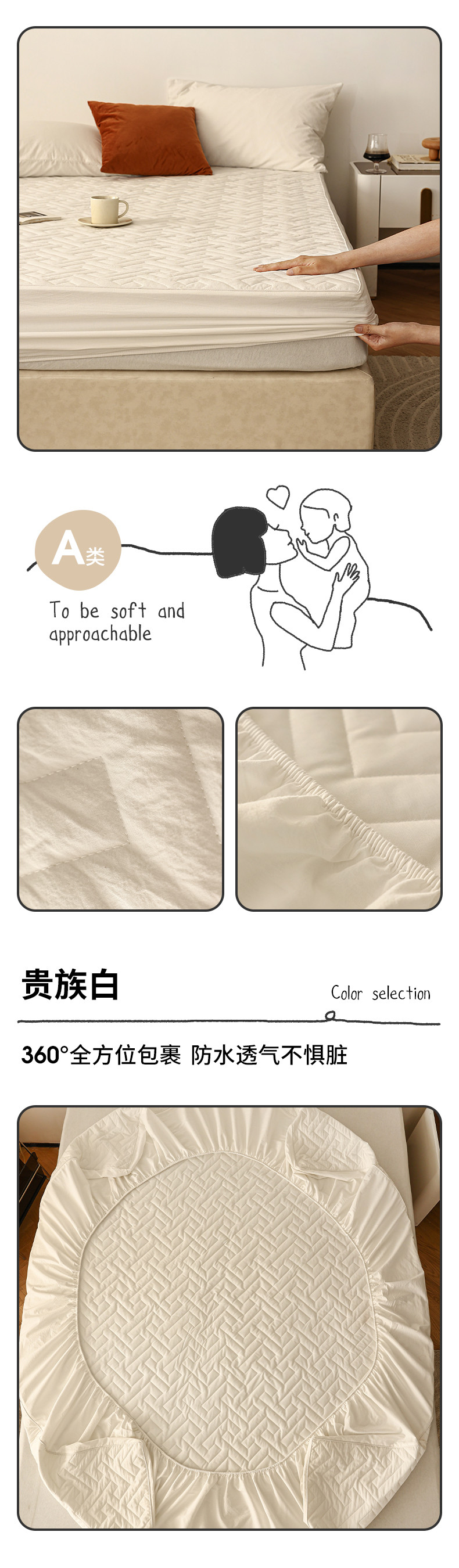 商品名称:万盛家纺 2023新款全棉40支水洗棉防水夹棉床笠 贵族白