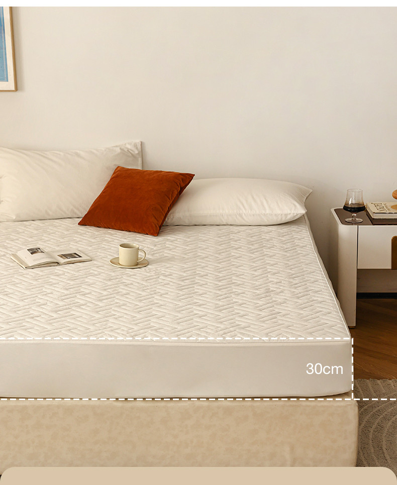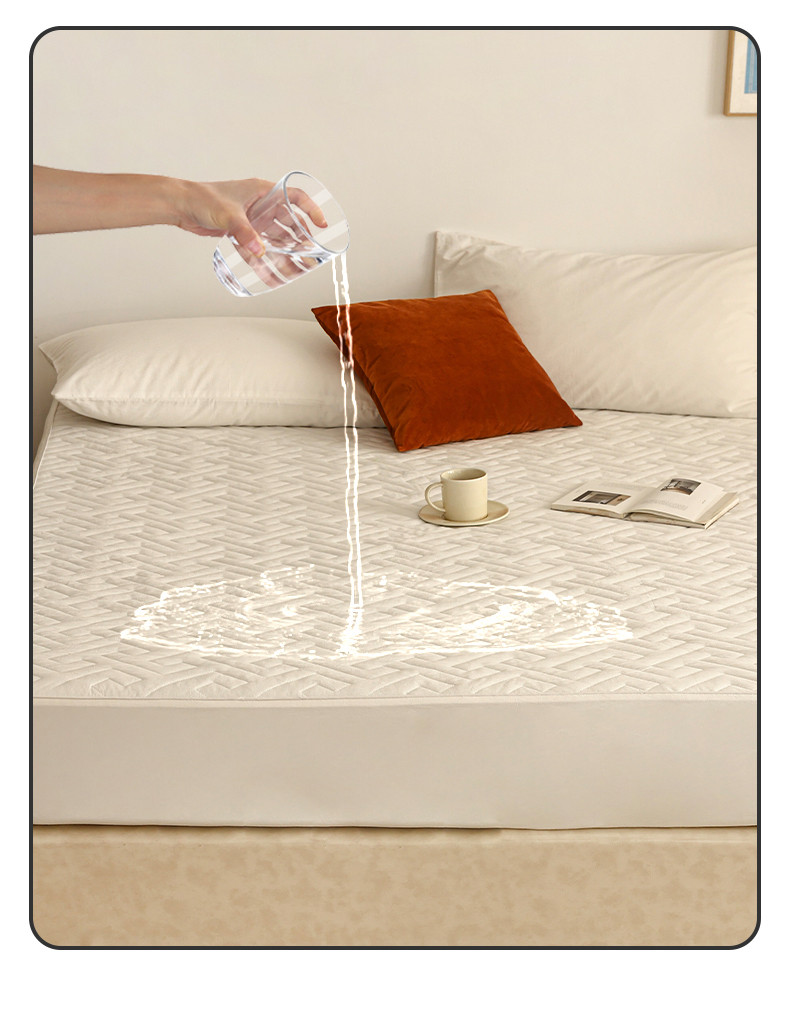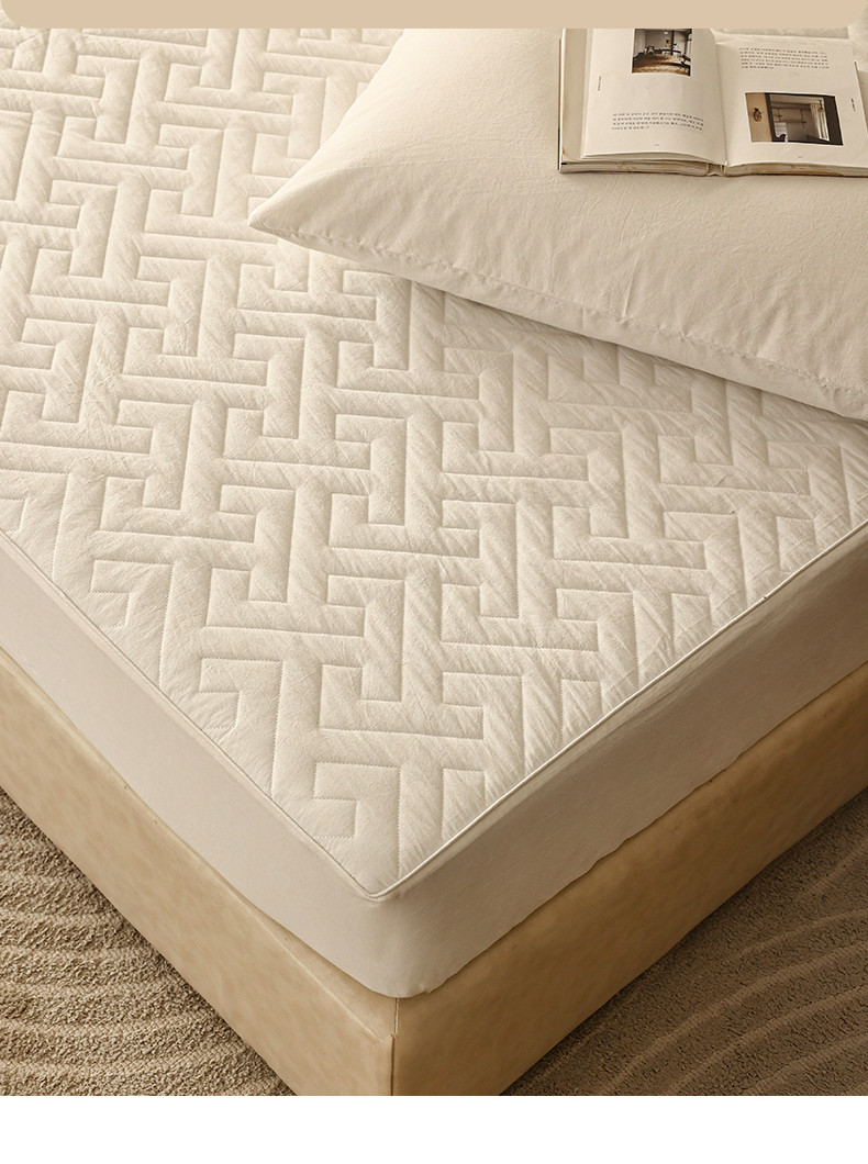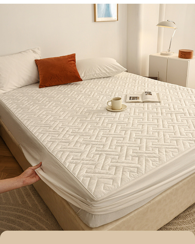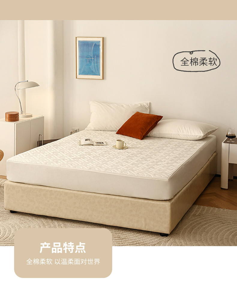 万盛家纺 2023新款全棉40支水洗棉防水夹棉床笠 贵族白