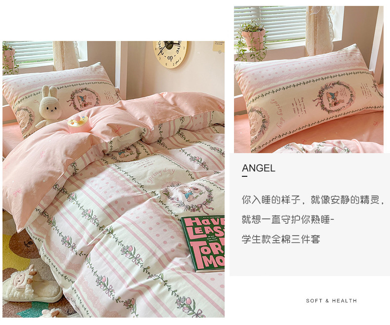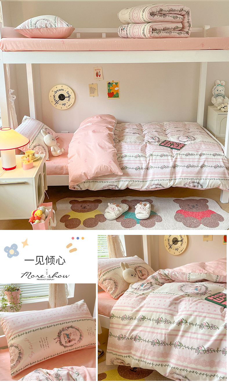 当前位置: 91家纺网 > 商品网购 > 床品套件 > 四件套 > 全棉普通四件套 > 麦伦 2023春夏全棉斜纹学生三件套四件套上下铺床品系列 一见倾心