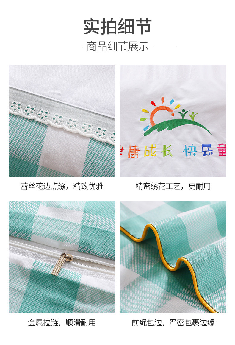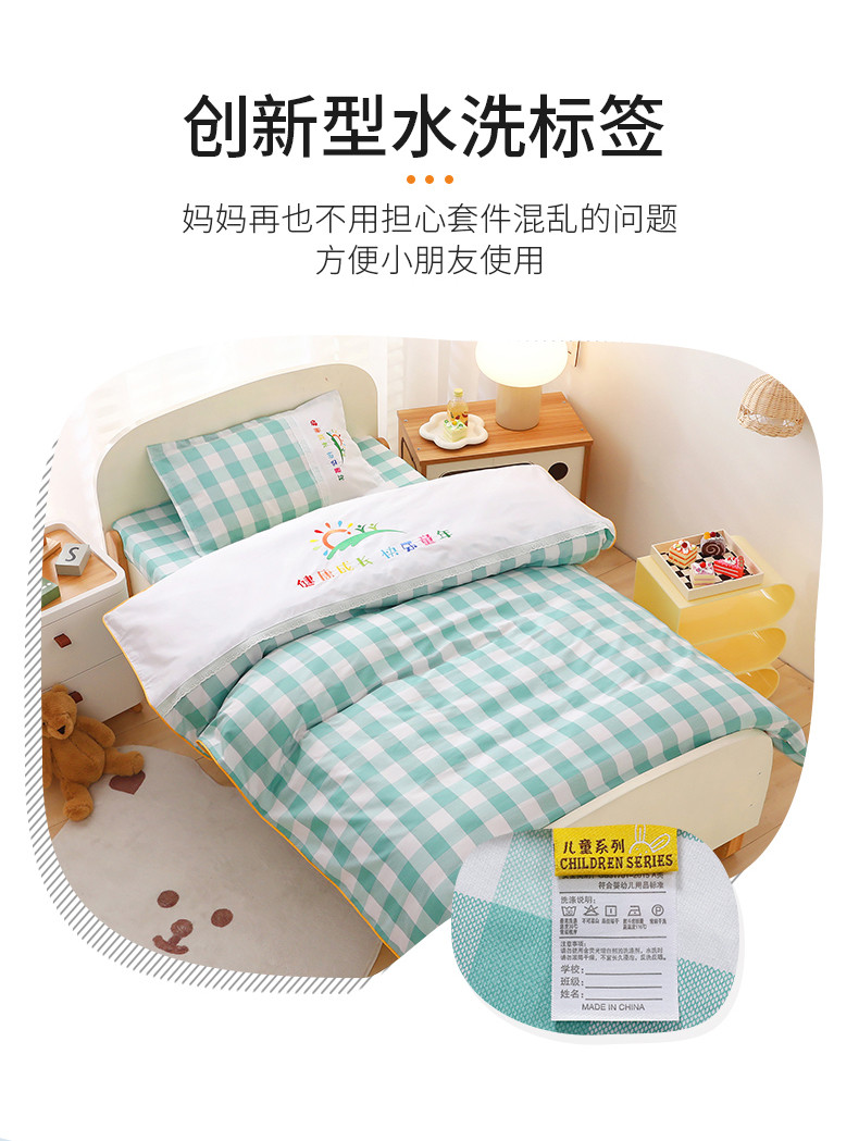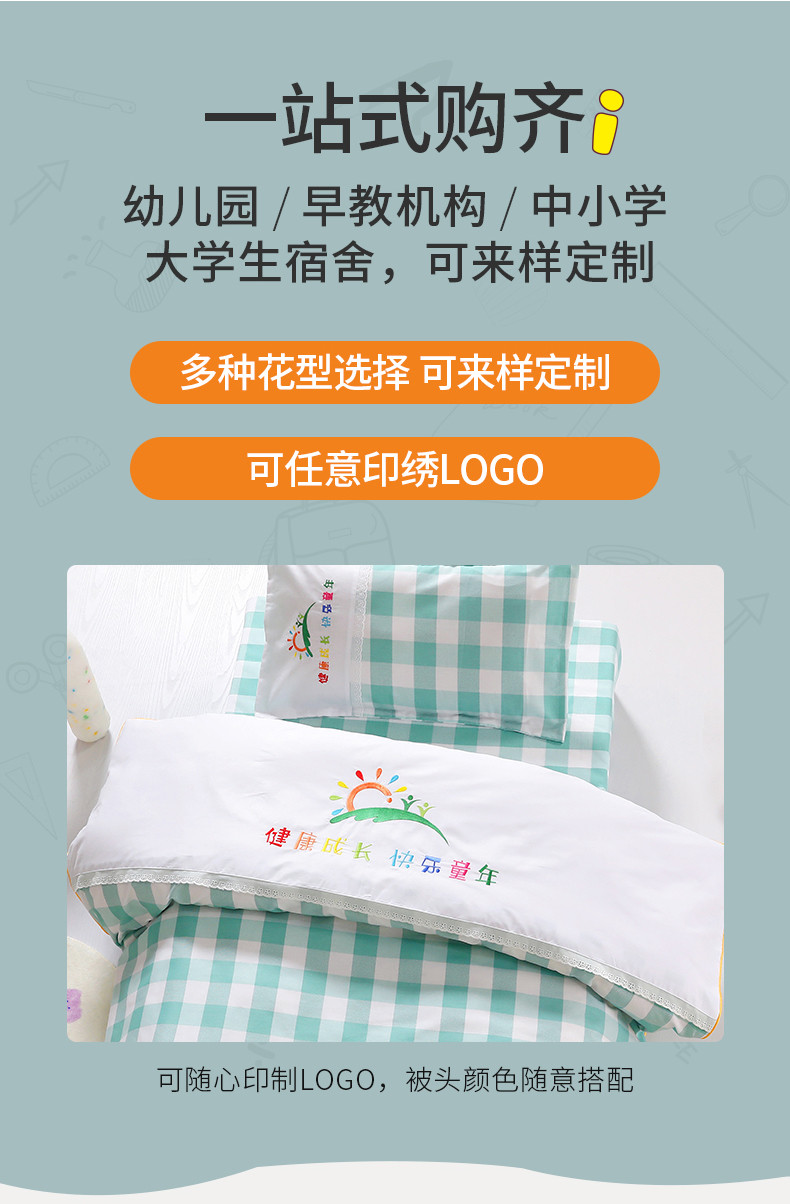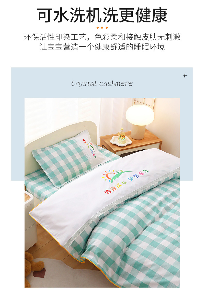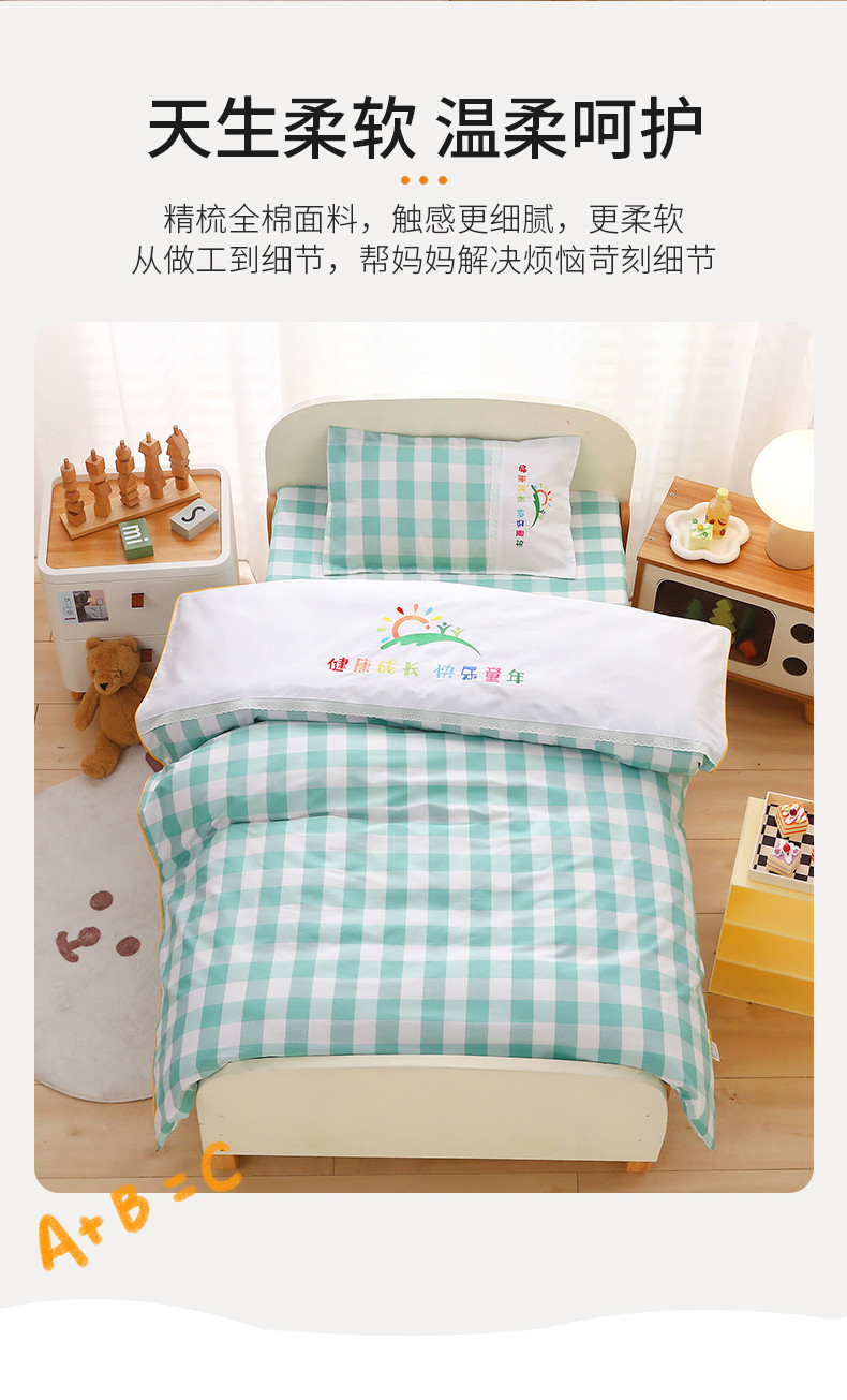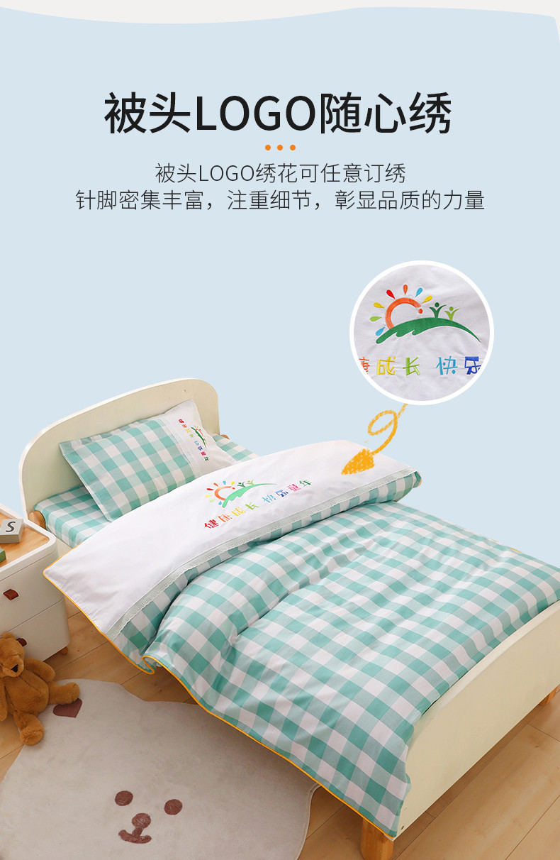 当前位置: 91家纺网 > 商品网购 > 床品套件 > 多件套 > 多件套 > 订做纯色绣花logo纯棉刺绣园标幼儿园被子三件套午睡六件套 大绿格