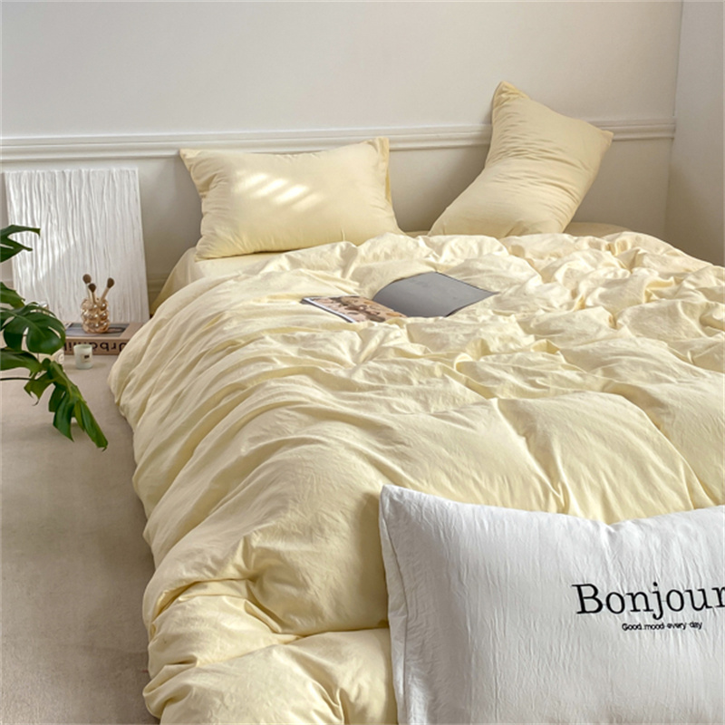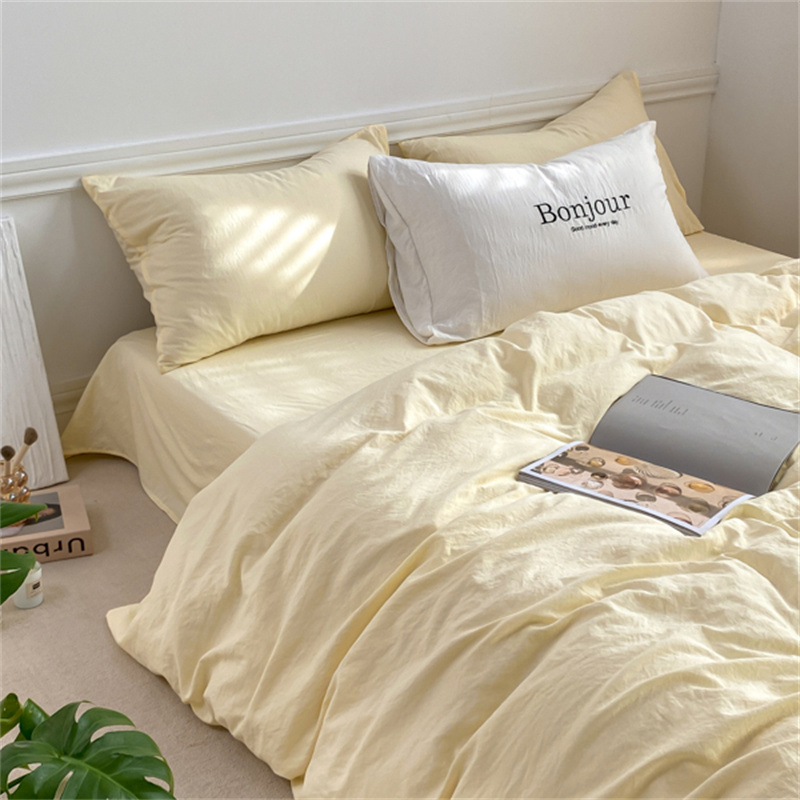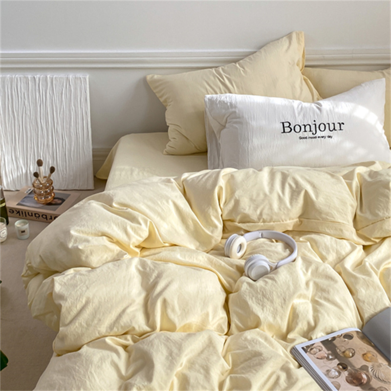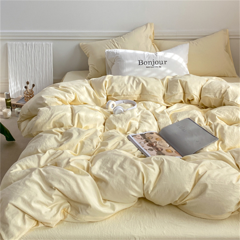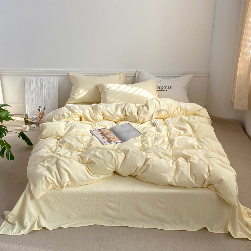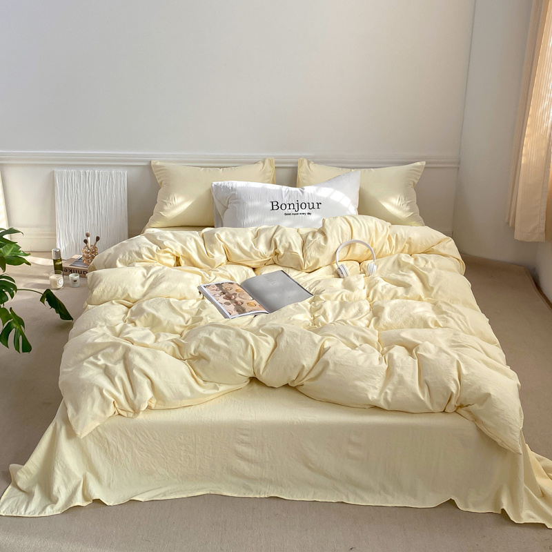 雨帆家纺 2023新款ins风超柔水洗棉四件套 ins芝士白