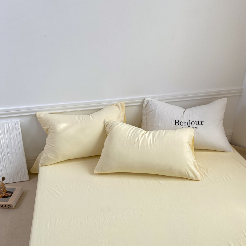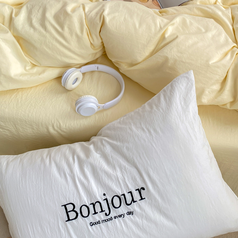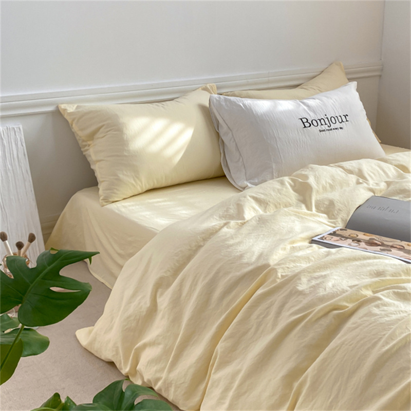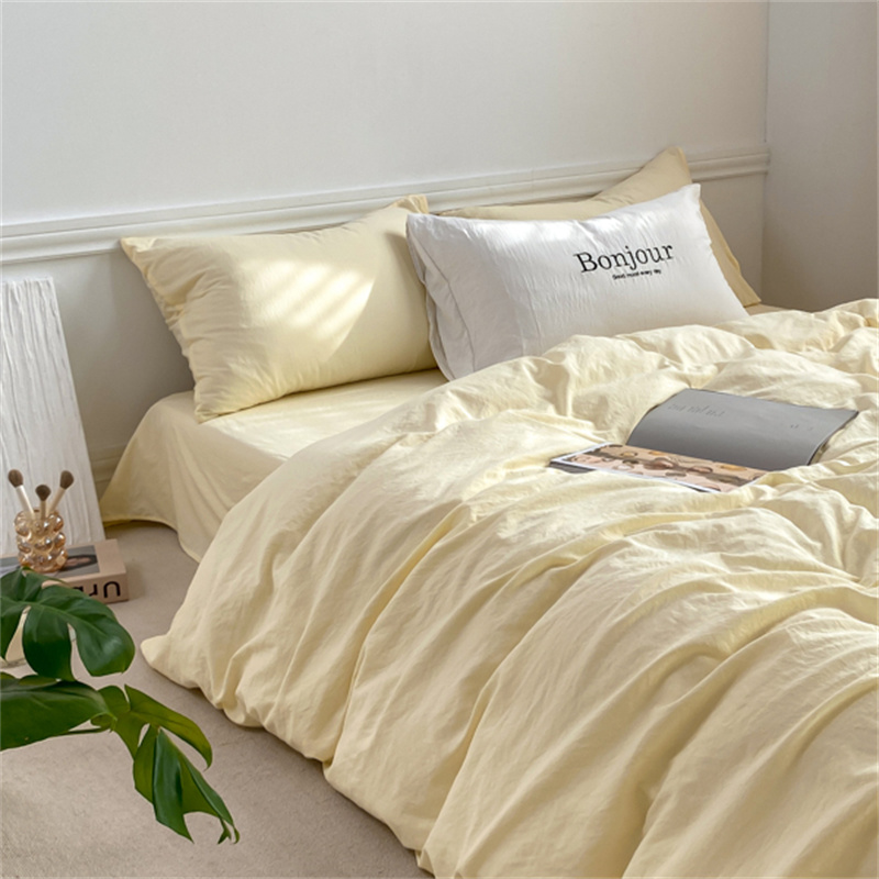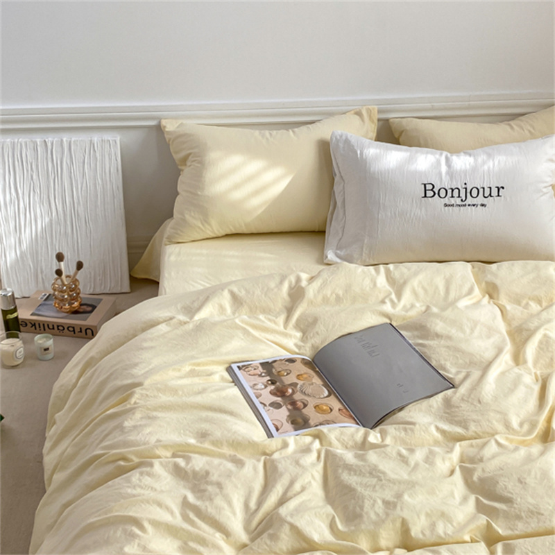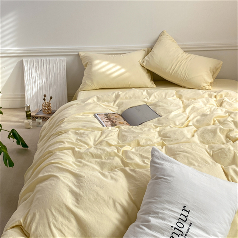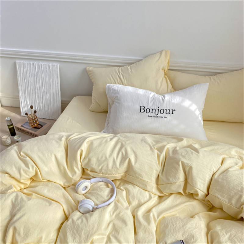 雨帆家纺 2023新款ins风超柔水洗棉四件套 ins芝士白
