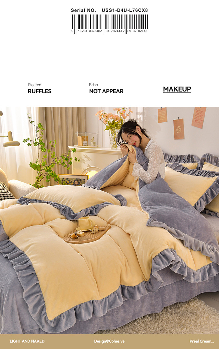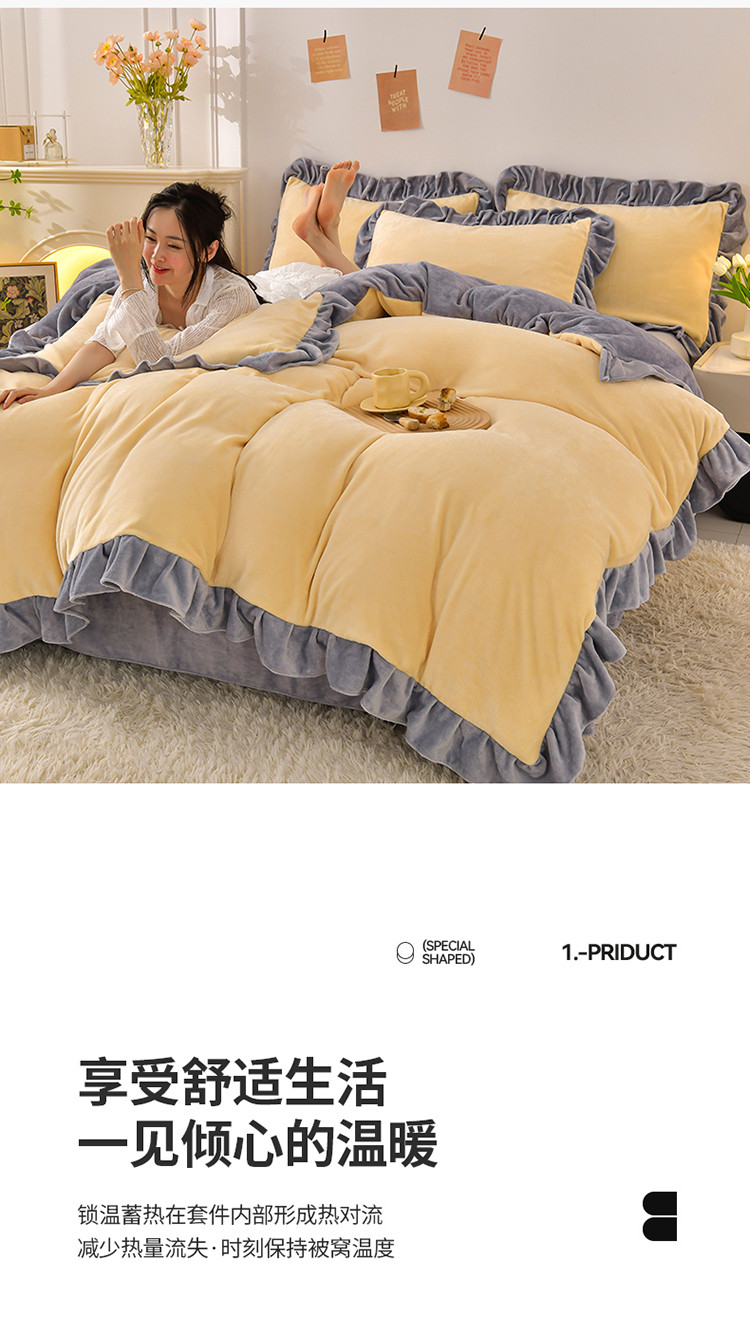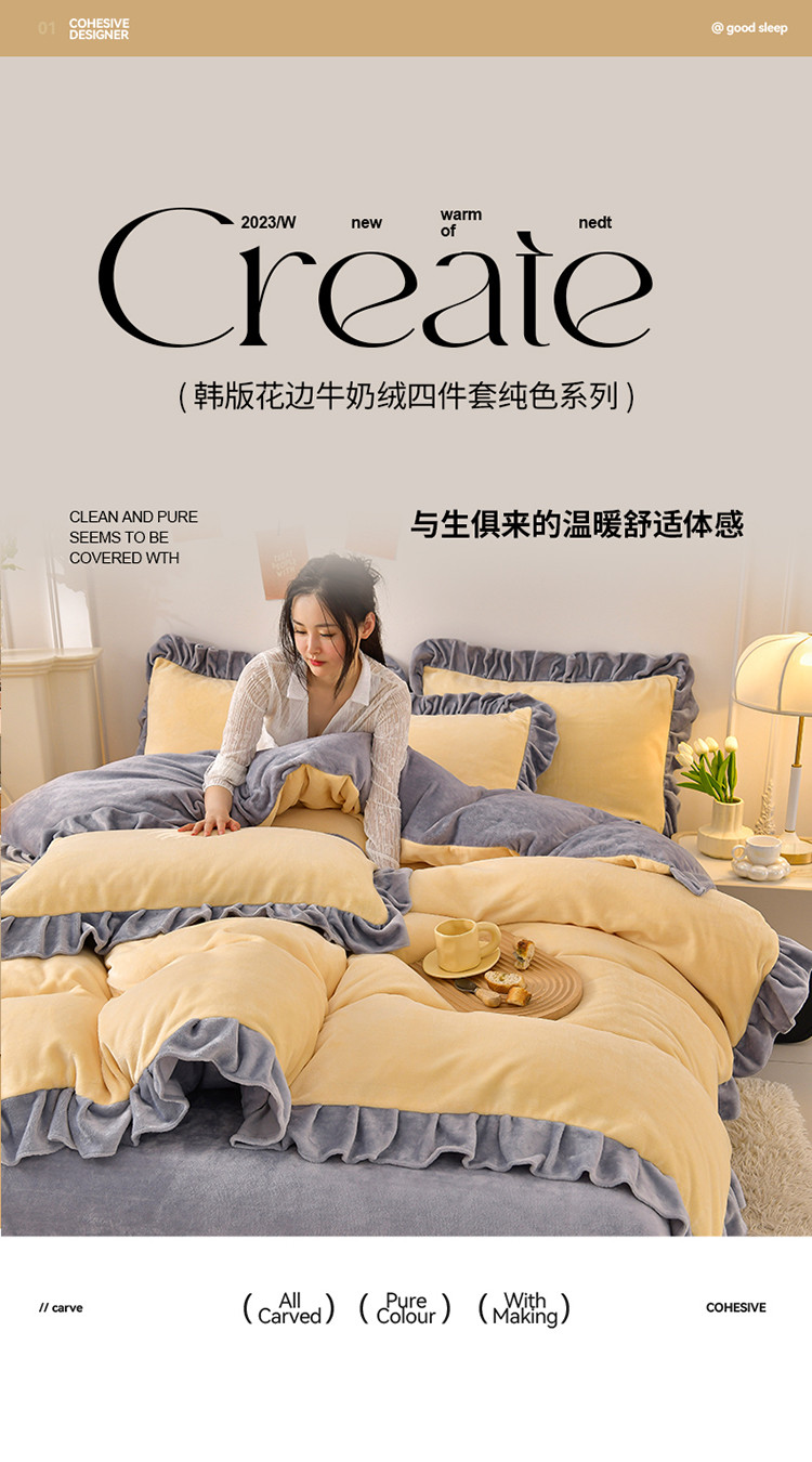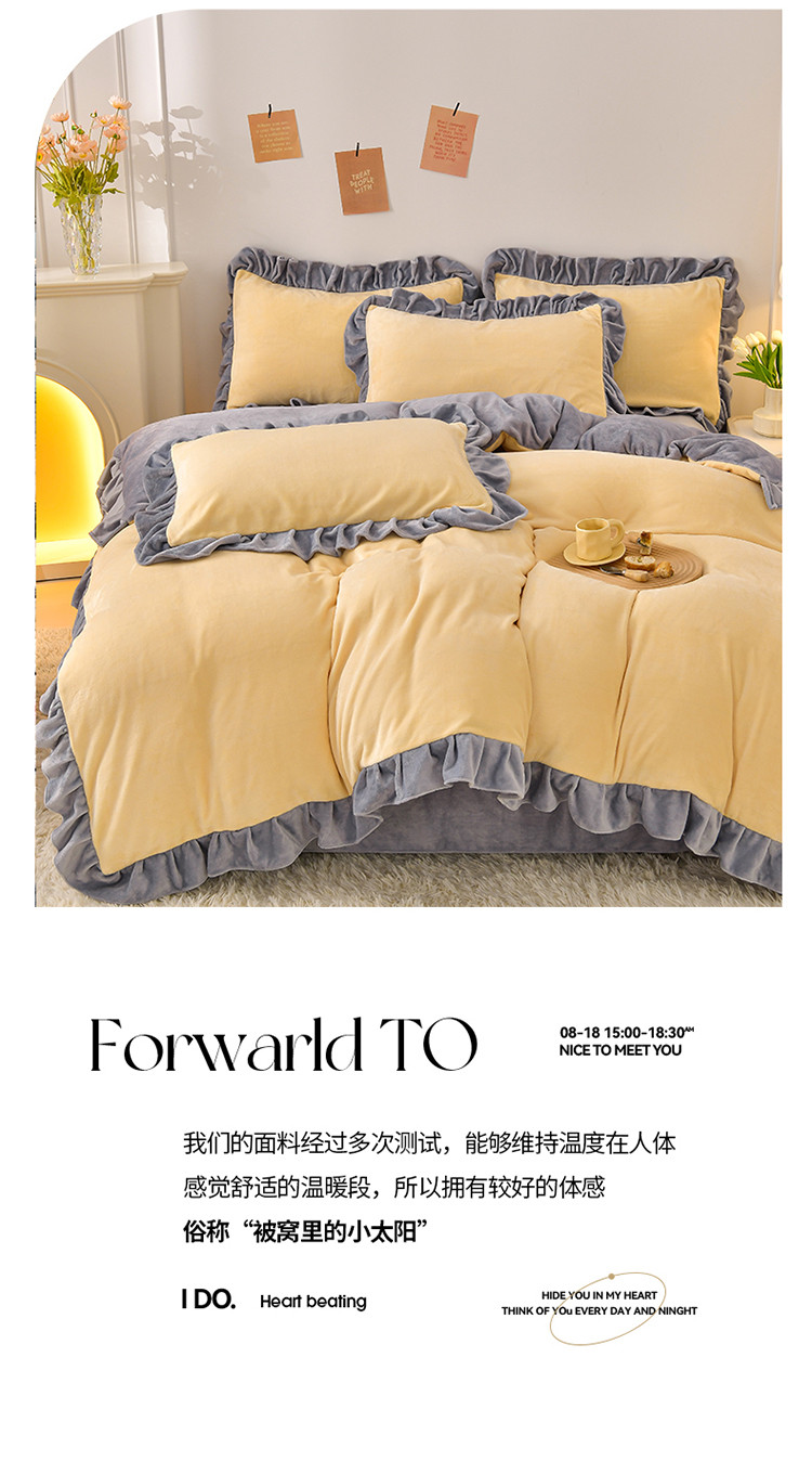 妮恒美 2023新款韩版纯色牛奶绒四件套 奶黄+石英灰