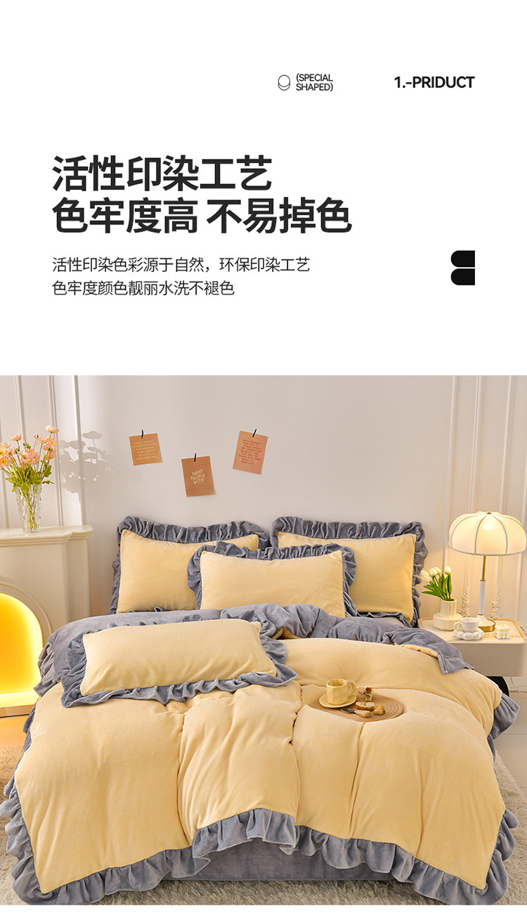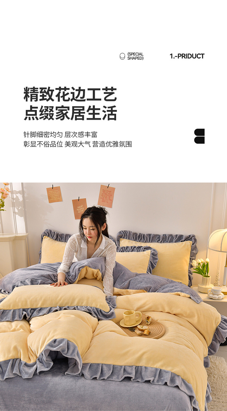 商品名称:妮恒美 2023新款韩版纯色牛奶绒四件套 奶黄+石英灰