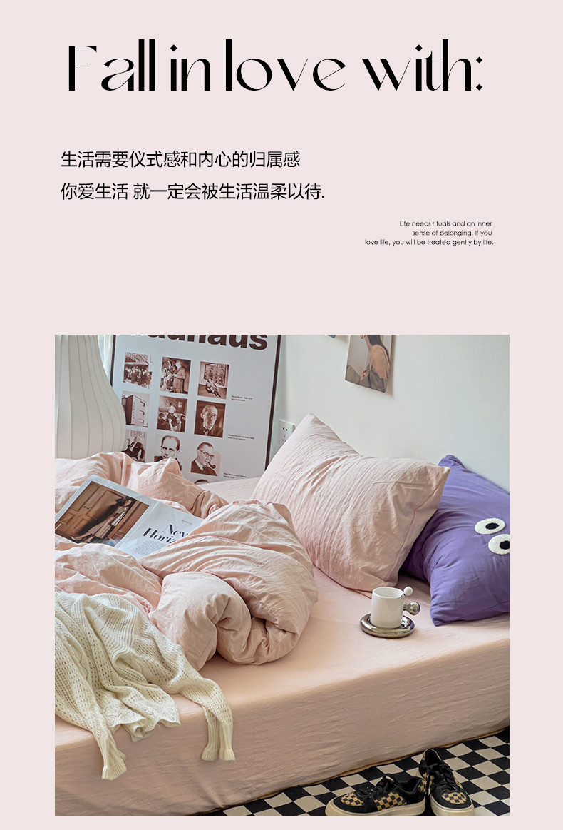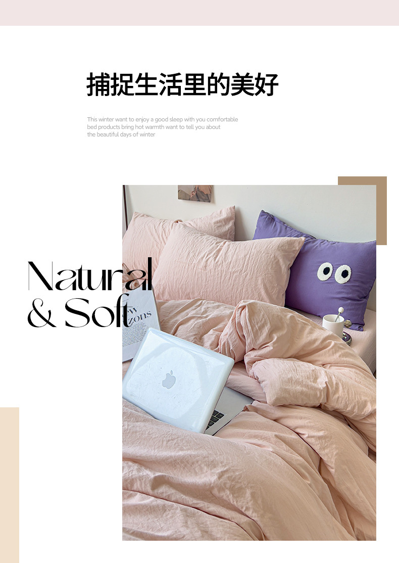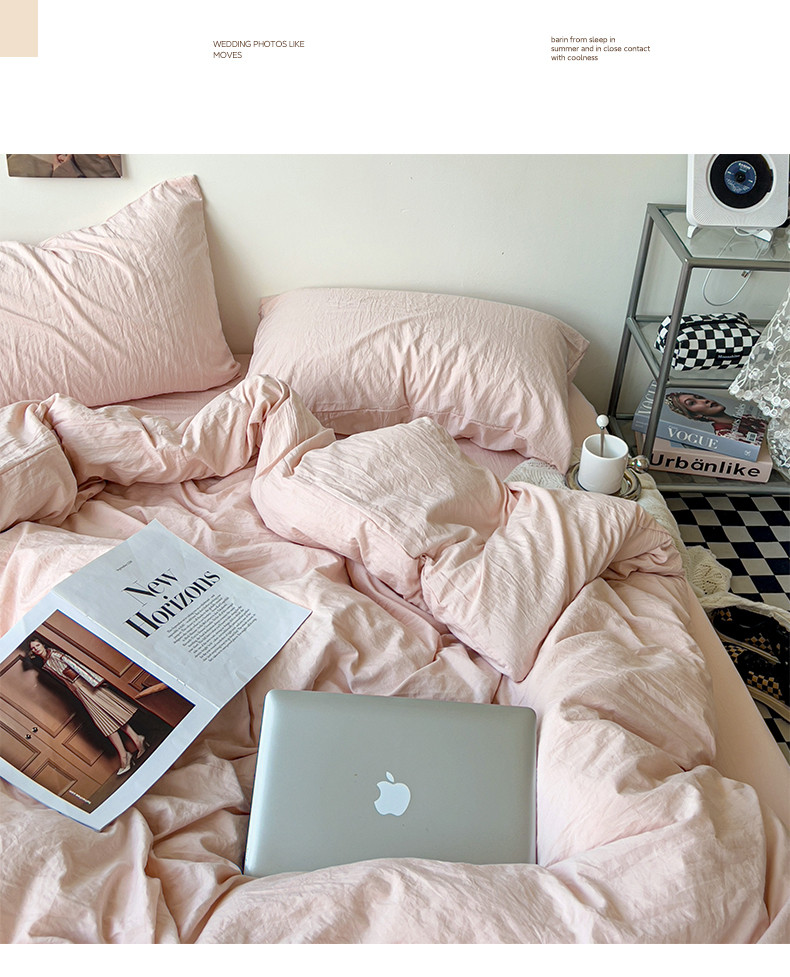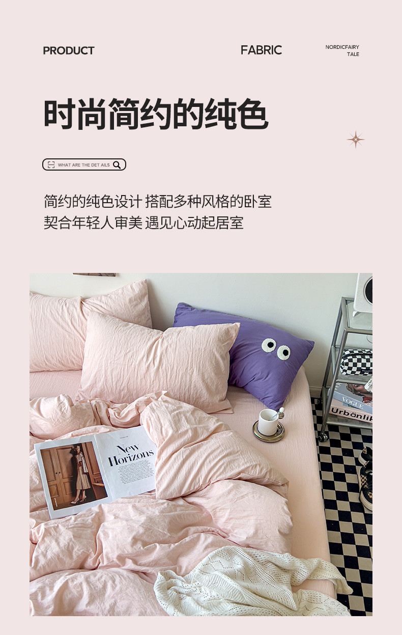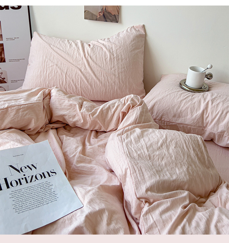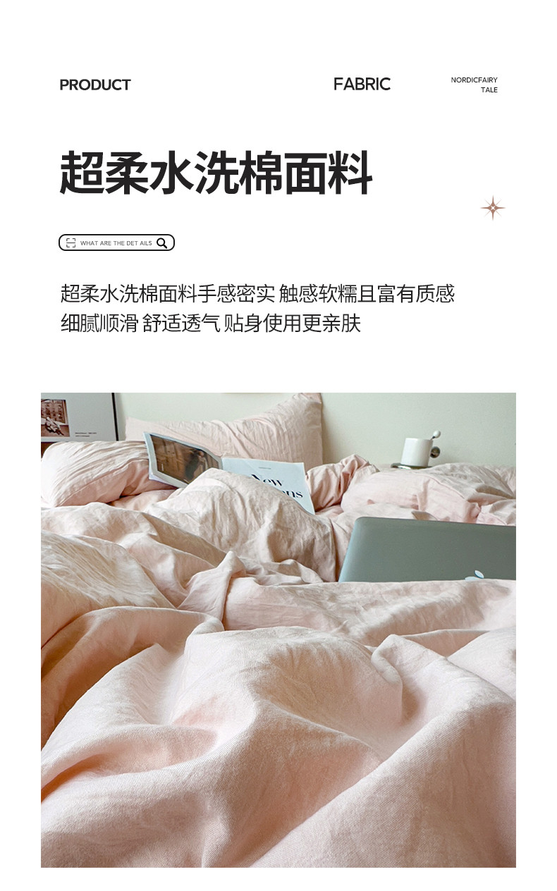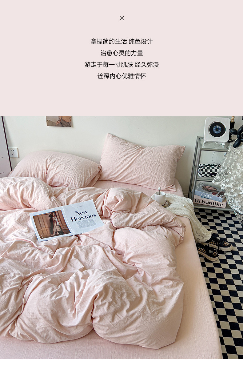 商品名称:水墨江南 2023新款超柔水洗棉简约纯色四件套 浅粉