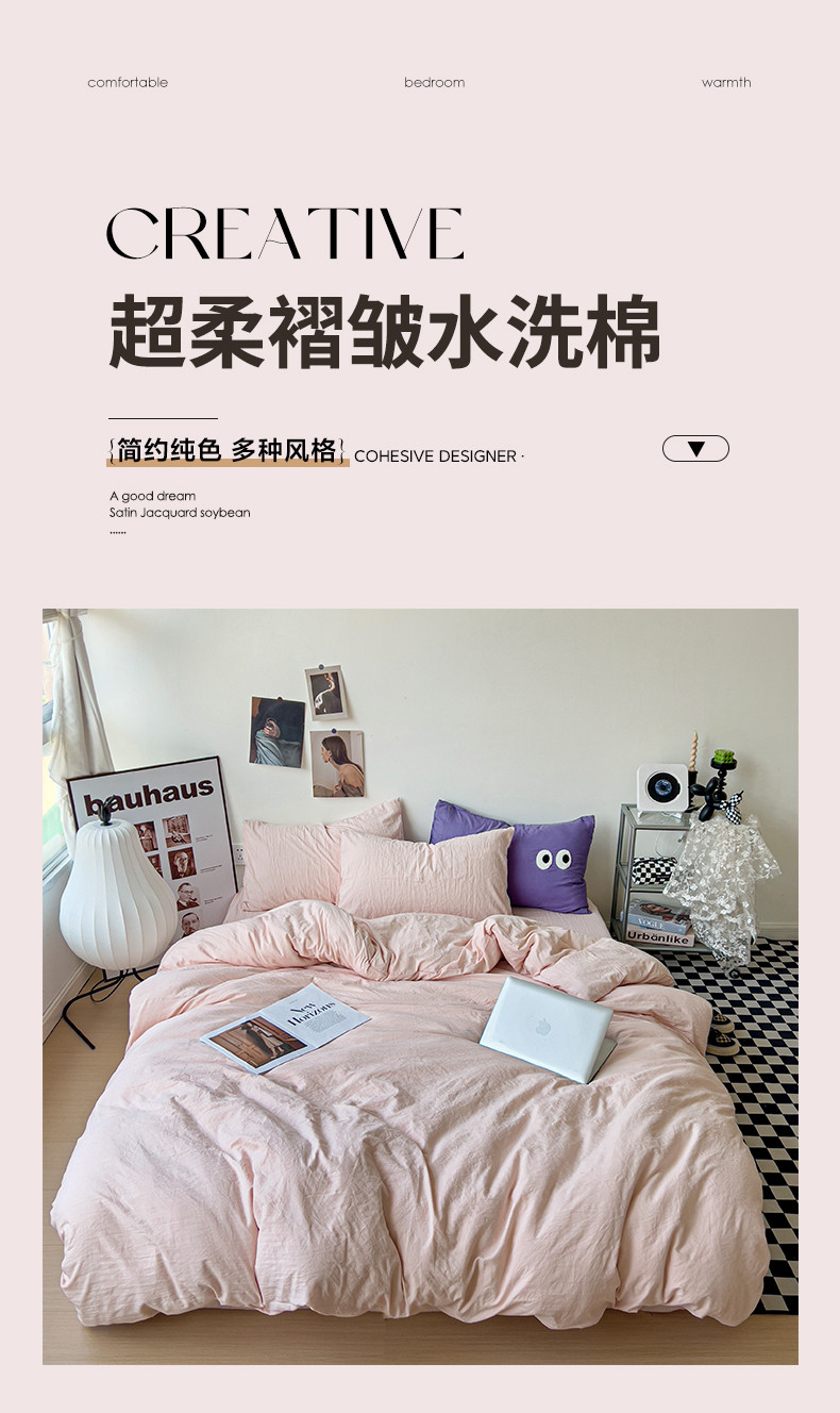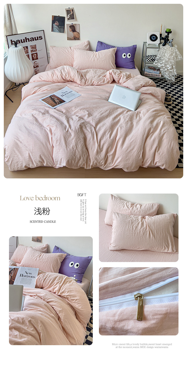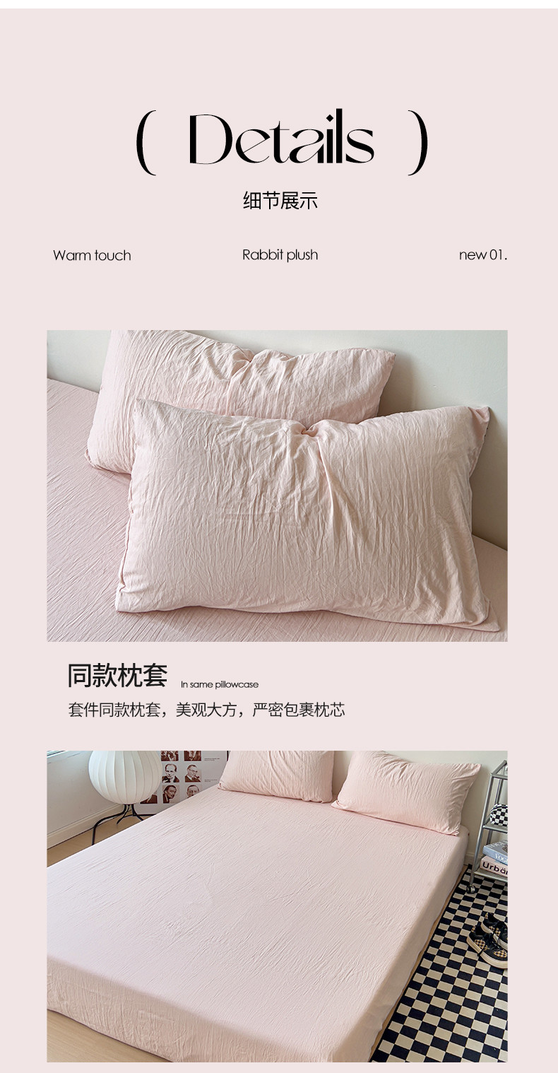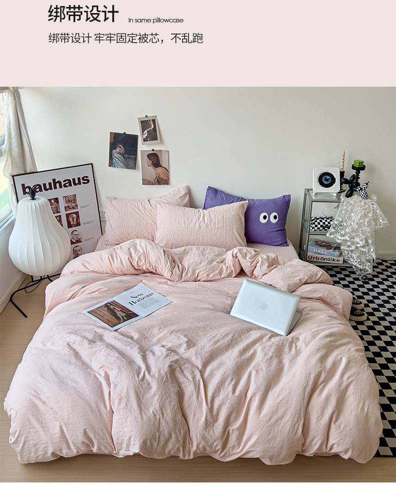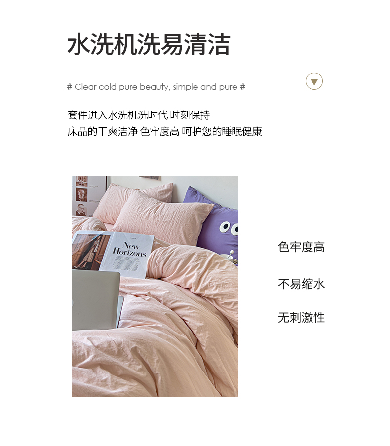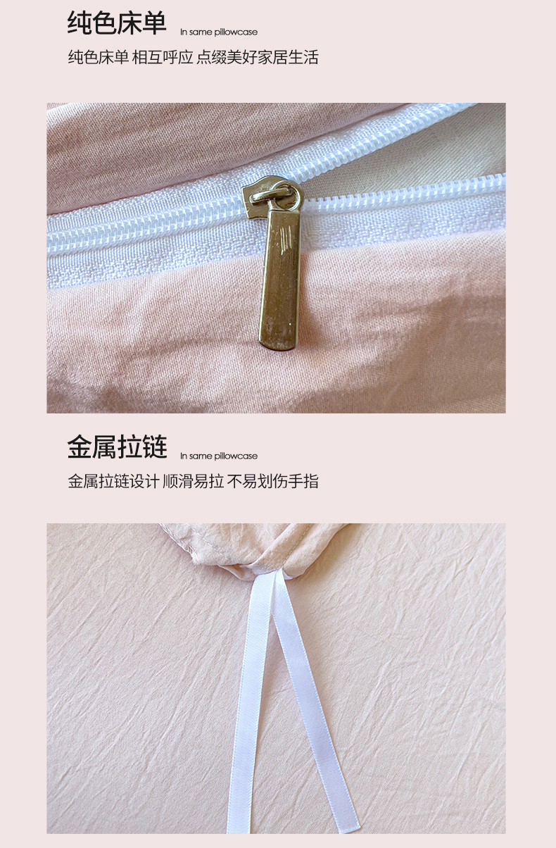 商品名称:水墨江南 2023新款超柔水洗棉简约纯色四件套 浅粉