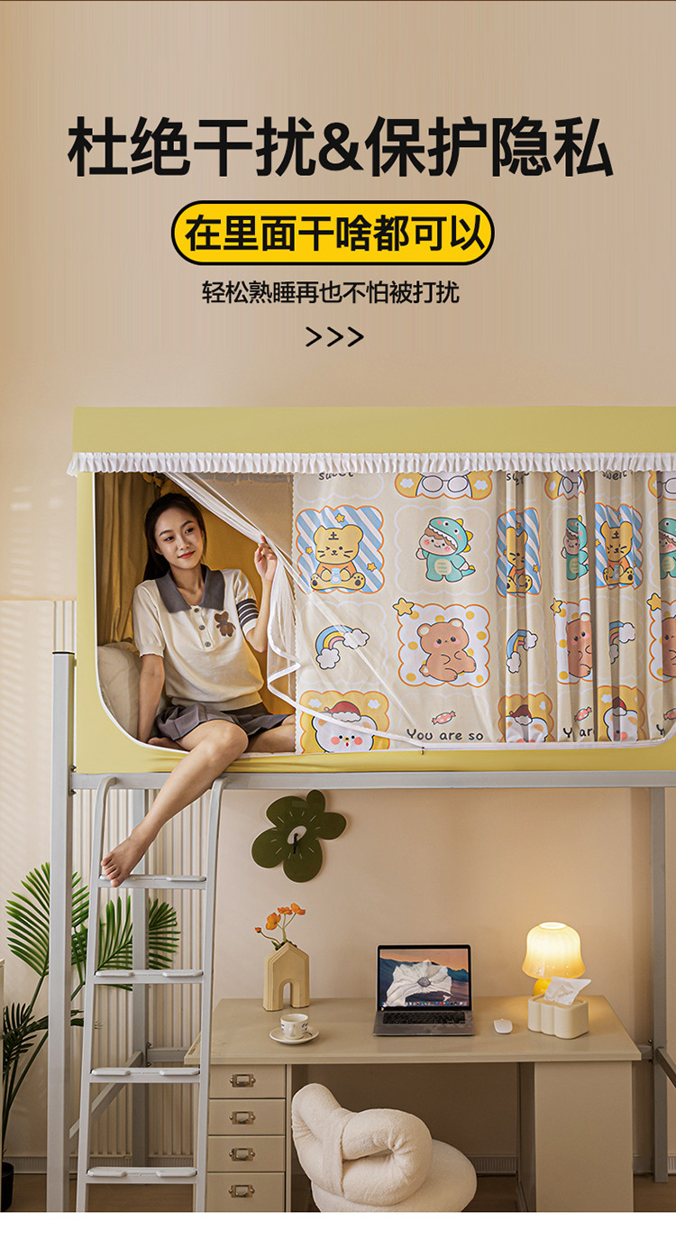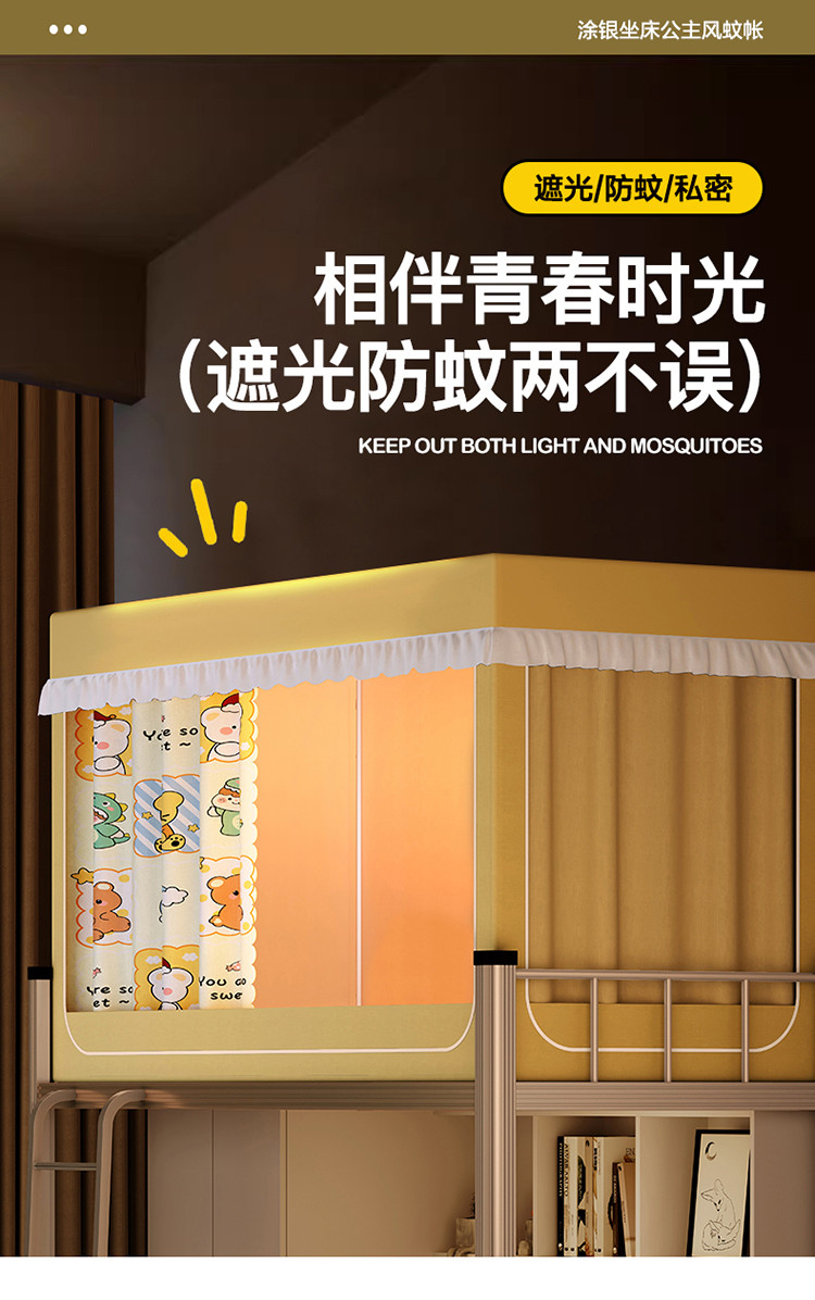 商品名称:青竹苑 2023新款强遮光涂银公主风学生蚊帐 动物派对