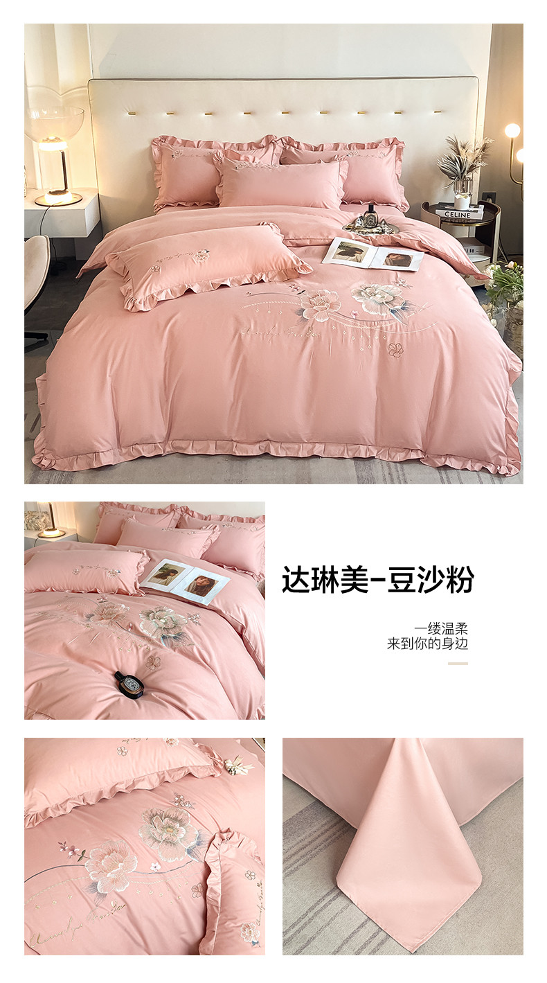 当前位置: 91家纺网 > 商品网购 > 床品套件 > 四件套 > 普通磨毛四件套 > 2023新款韩版亲肤磨毛刺绣蕾丝床裙床单如意系列四件套 达琳美-豆沙粉