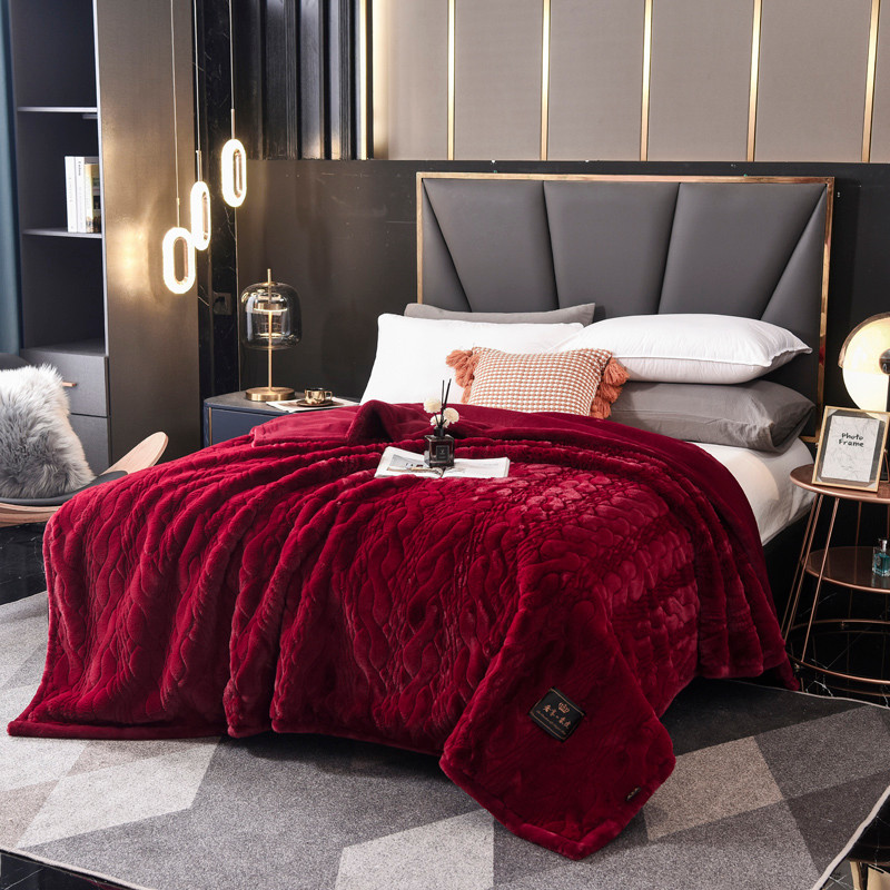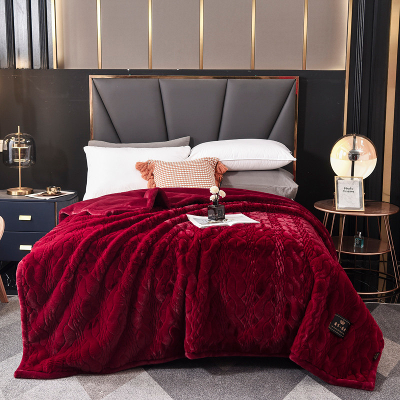 尚品绵羊 2025秋冬新款双层加云毯毛毯直播爆款毯子 裘皮毯-典雅红
