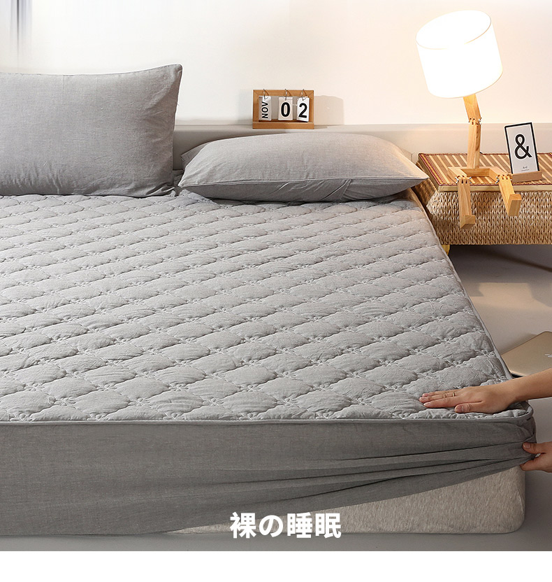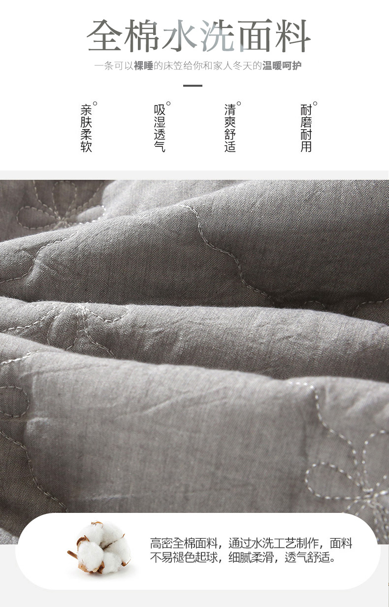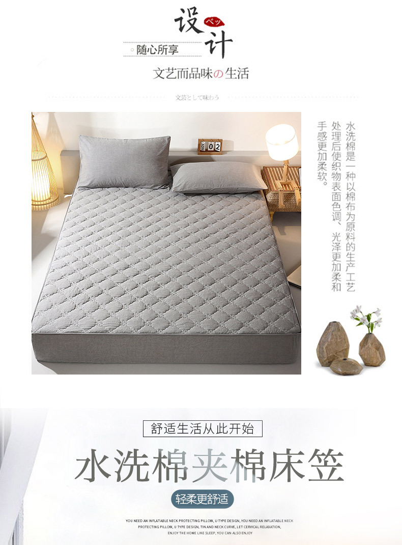 商品名称:胜权家纺 2024新款日式全棉色织水洗棉夹棉床笠 深烟灰
