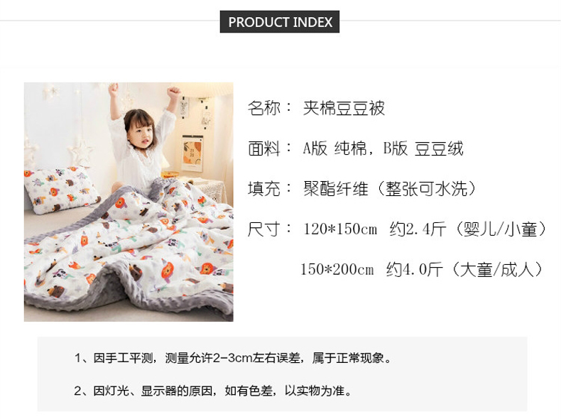 商品名称:十九色 2024新款儿童全棉豆豆被春秋被冬被婴幼儿安抚毯被子 圣诞