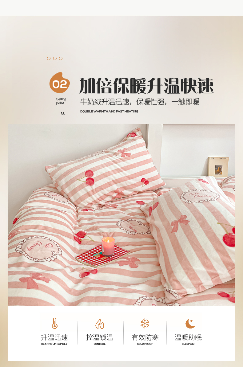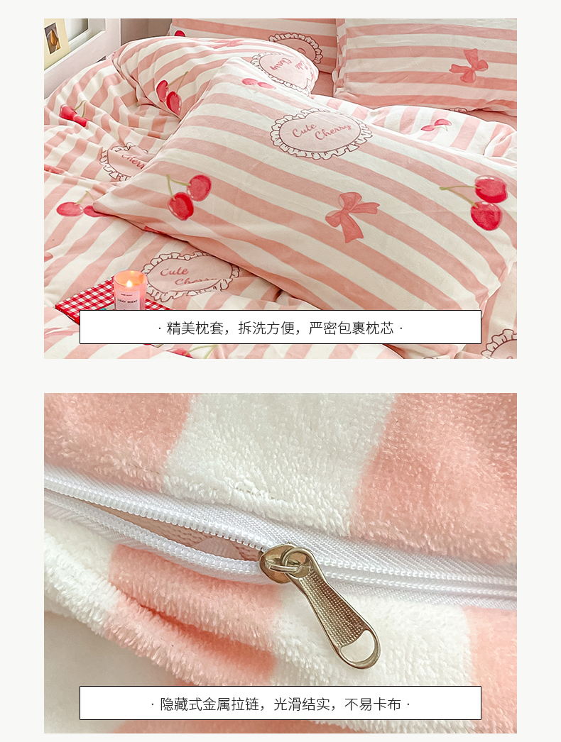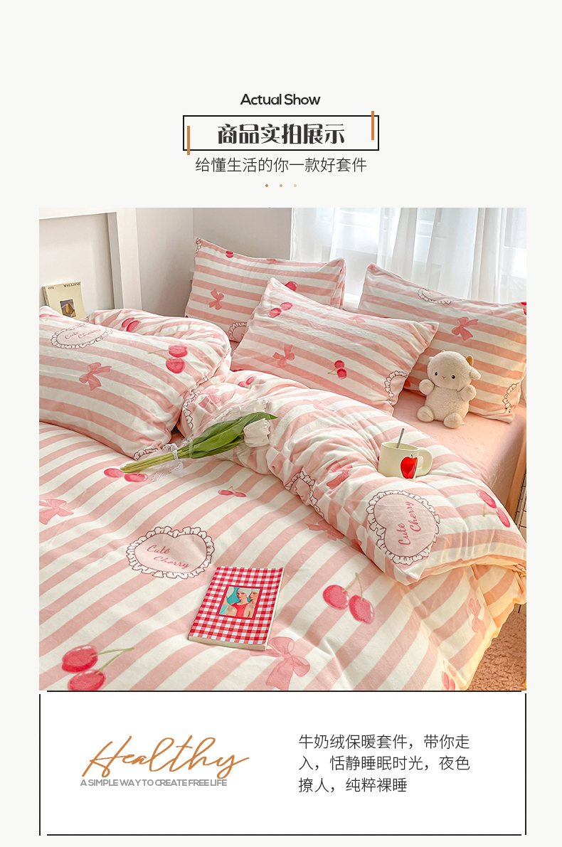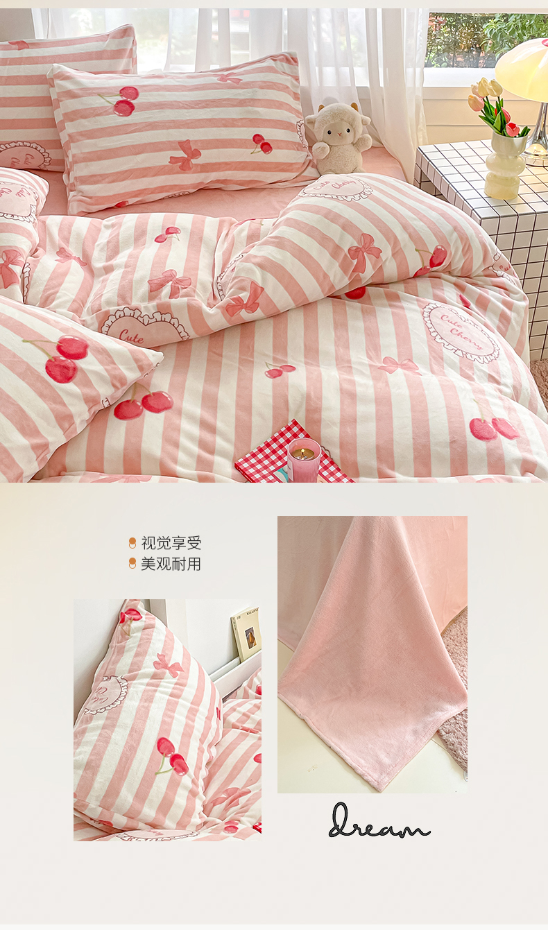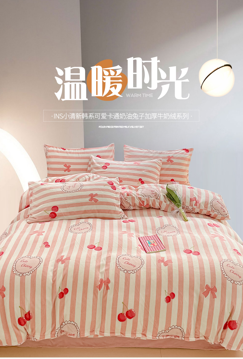 桃子 2023新款ins小清新韩系可爱卡通奶油兔子加厚牛奶绒系列四件套详情第三批 绒-可爱樱桃