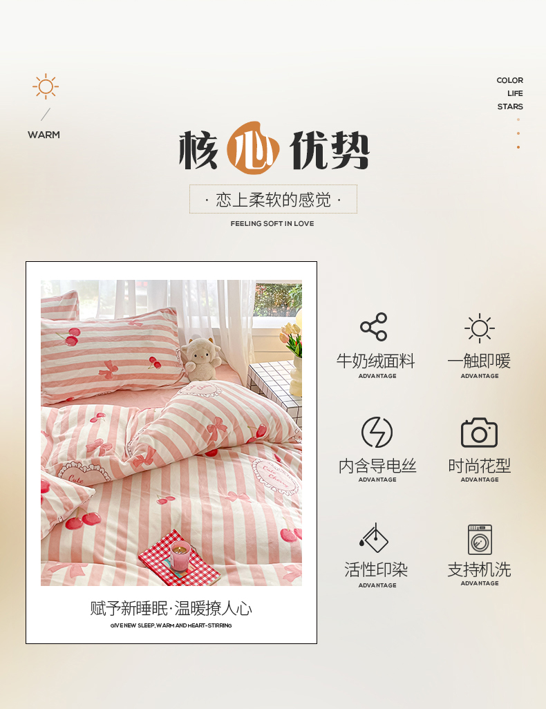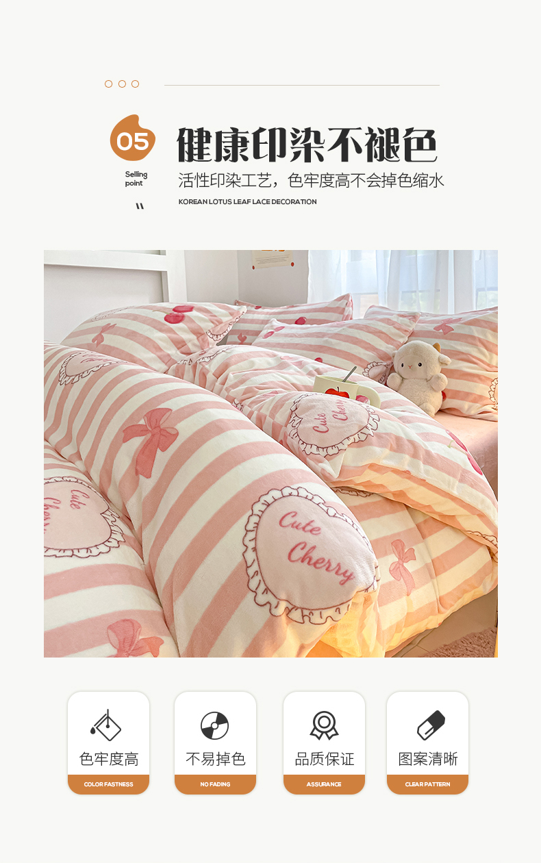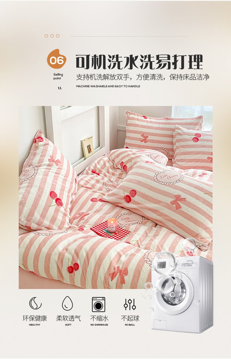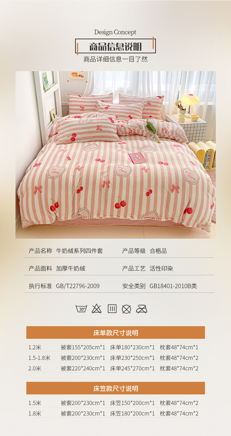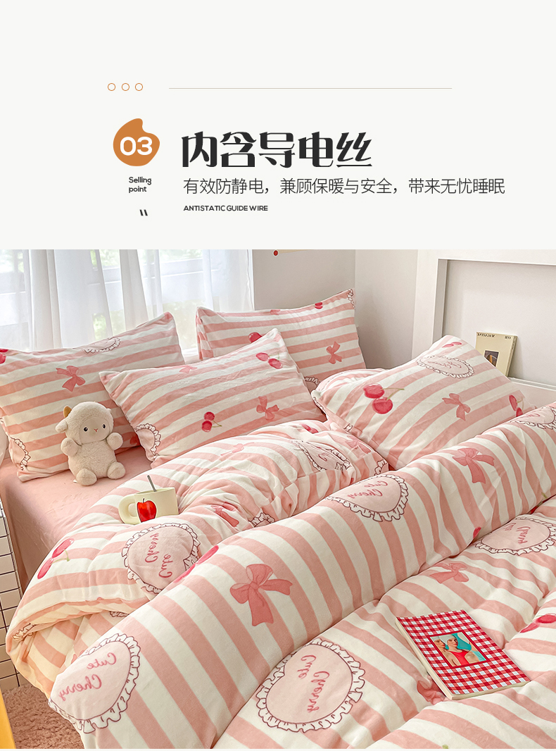 桃子 2023新款ins小清新韩系可爱卡通奶油兔子加厚牛奶绒系列四件套详情第三批 绒-可爱樱桃