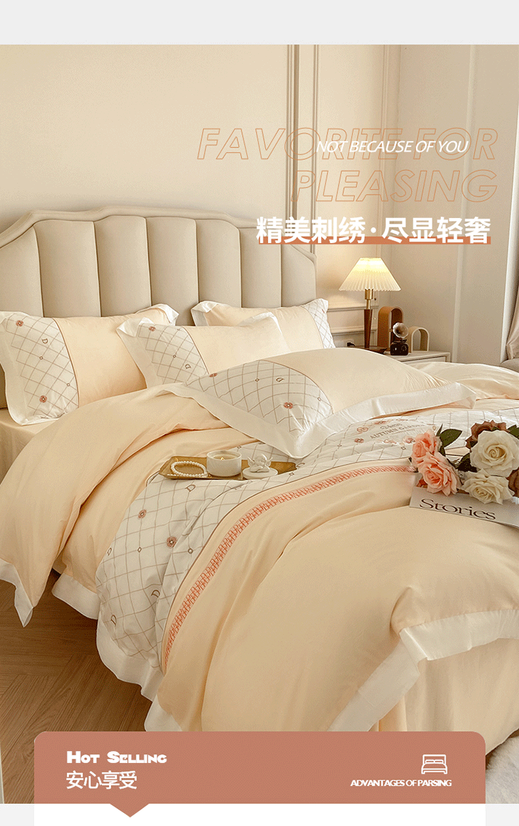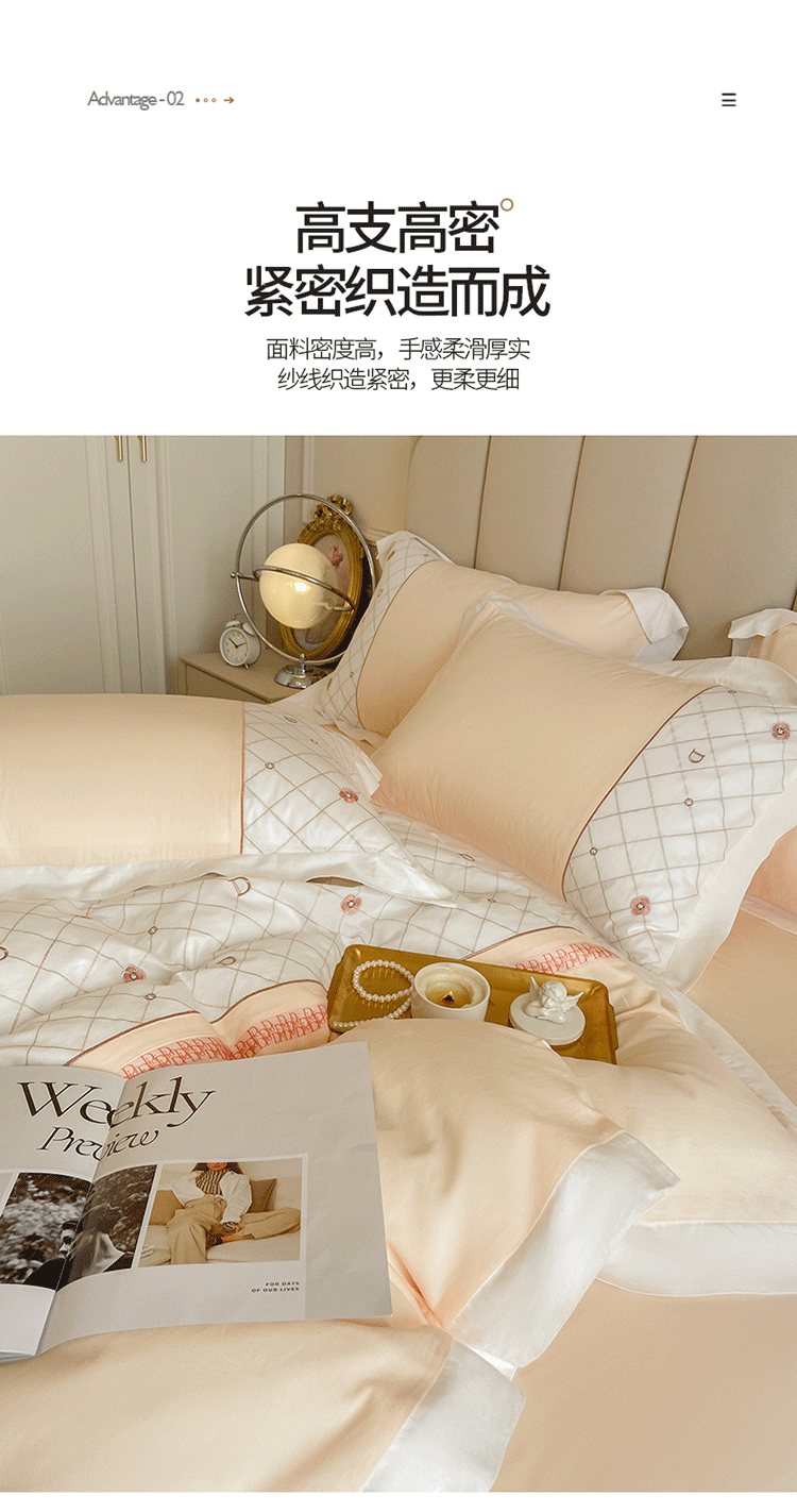 欧冠 2023秋冬保暖60S全棉刺绣拼接菲曼系列四件套 菲曼-香槟