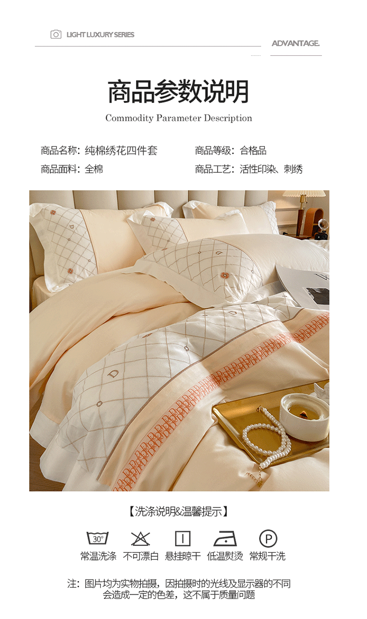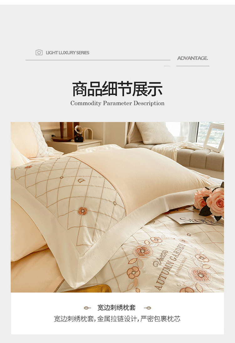 商品名称:欧冠 2023秋冬保暖60S全棉刺绣拼接菲曼系列四件套 菲曼-香槟
